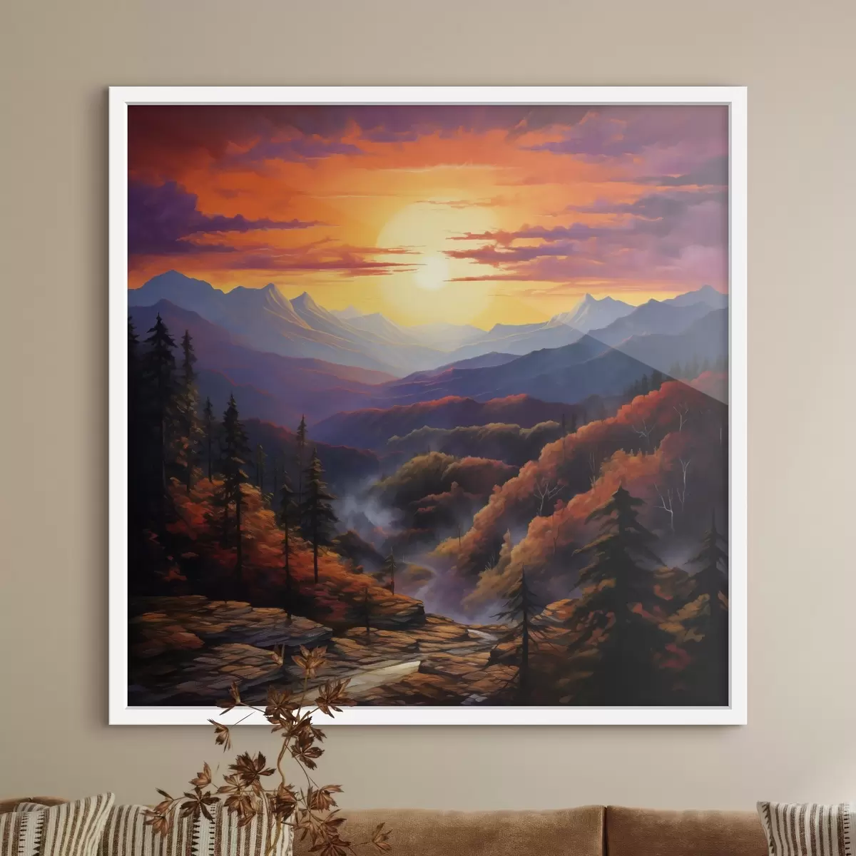 Plakatas Miškas ir kalnai saulėlydžio metu Ne f44045