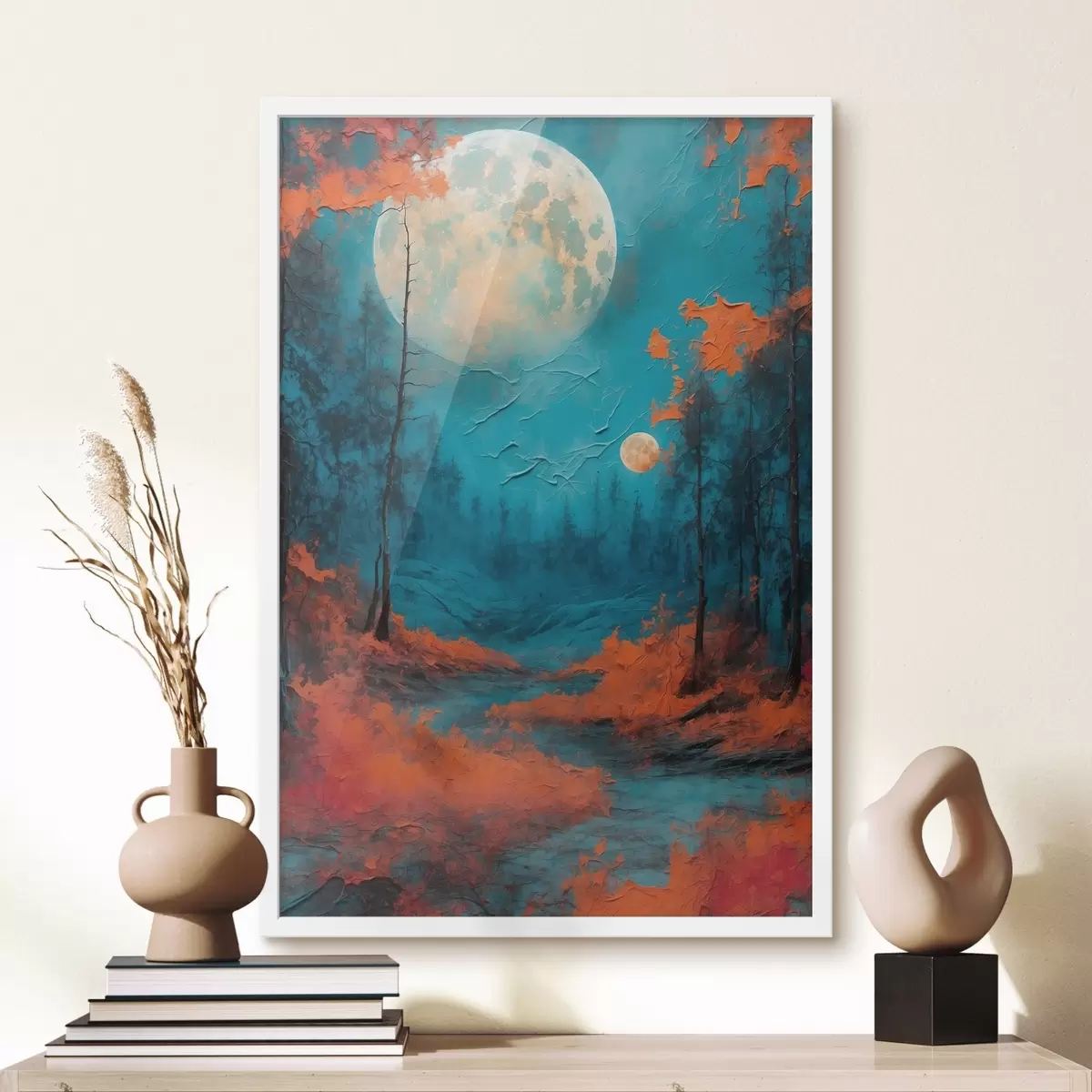 Plakatas Juodas miškas juodame mėnulyje aliejinės tapybos stiliumi f44063
