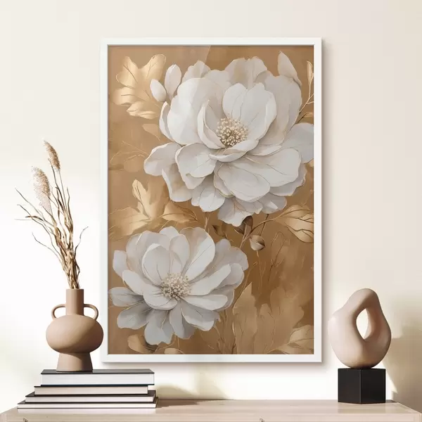 Plakatas Baltos gėlės geltoname fone Ne f44067