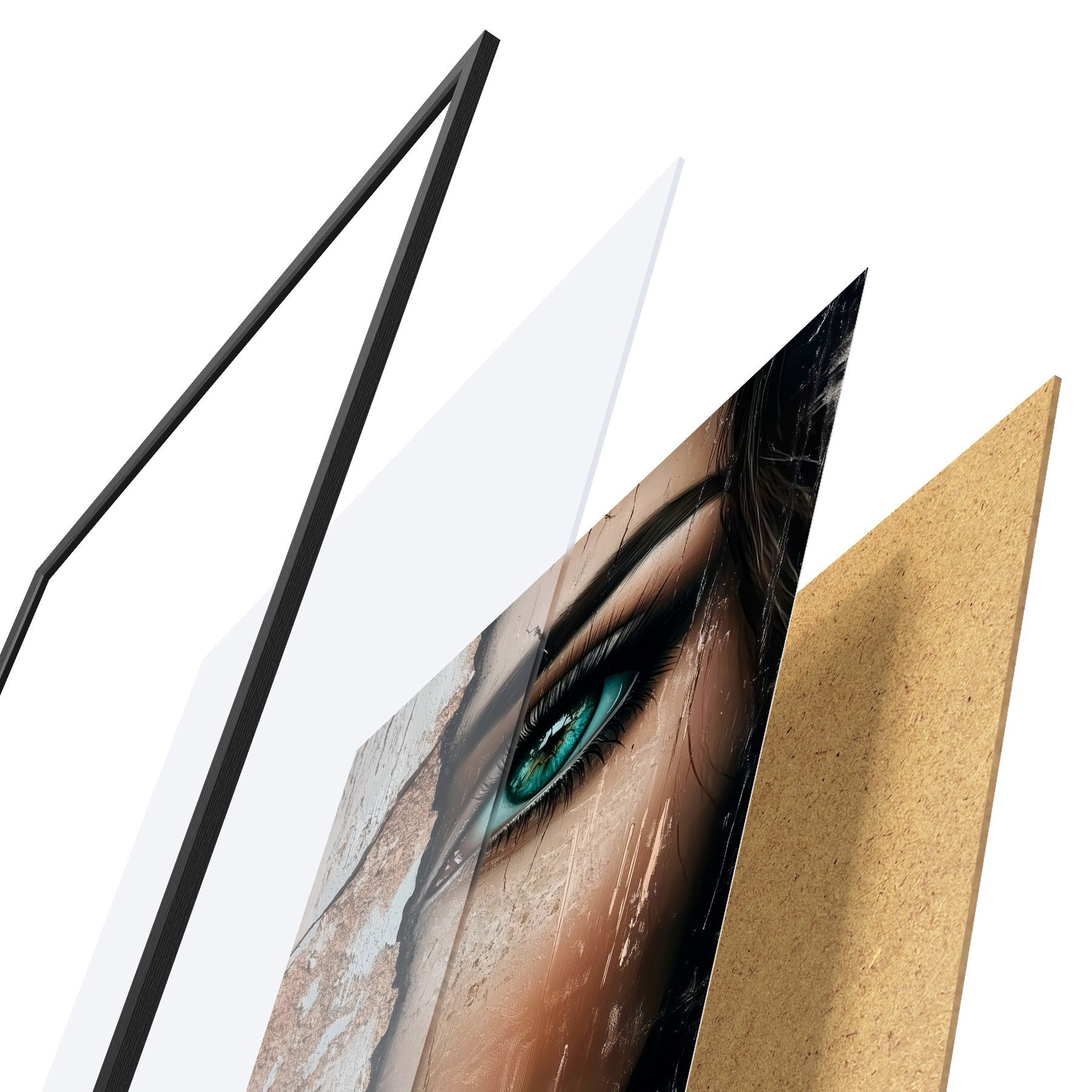 Plakatą sudaro rėmas, pleksiklas, atspausdintas vaizdas ir medžio drožlių plokštės pagrindas. Plakatą galima iš karto pakabinti ant sienos dėl kitoje pusėje esančių laikiklių.