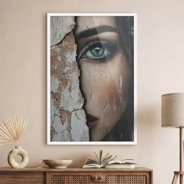 Plakatas Mergaitės veidas už senos sienos f44069