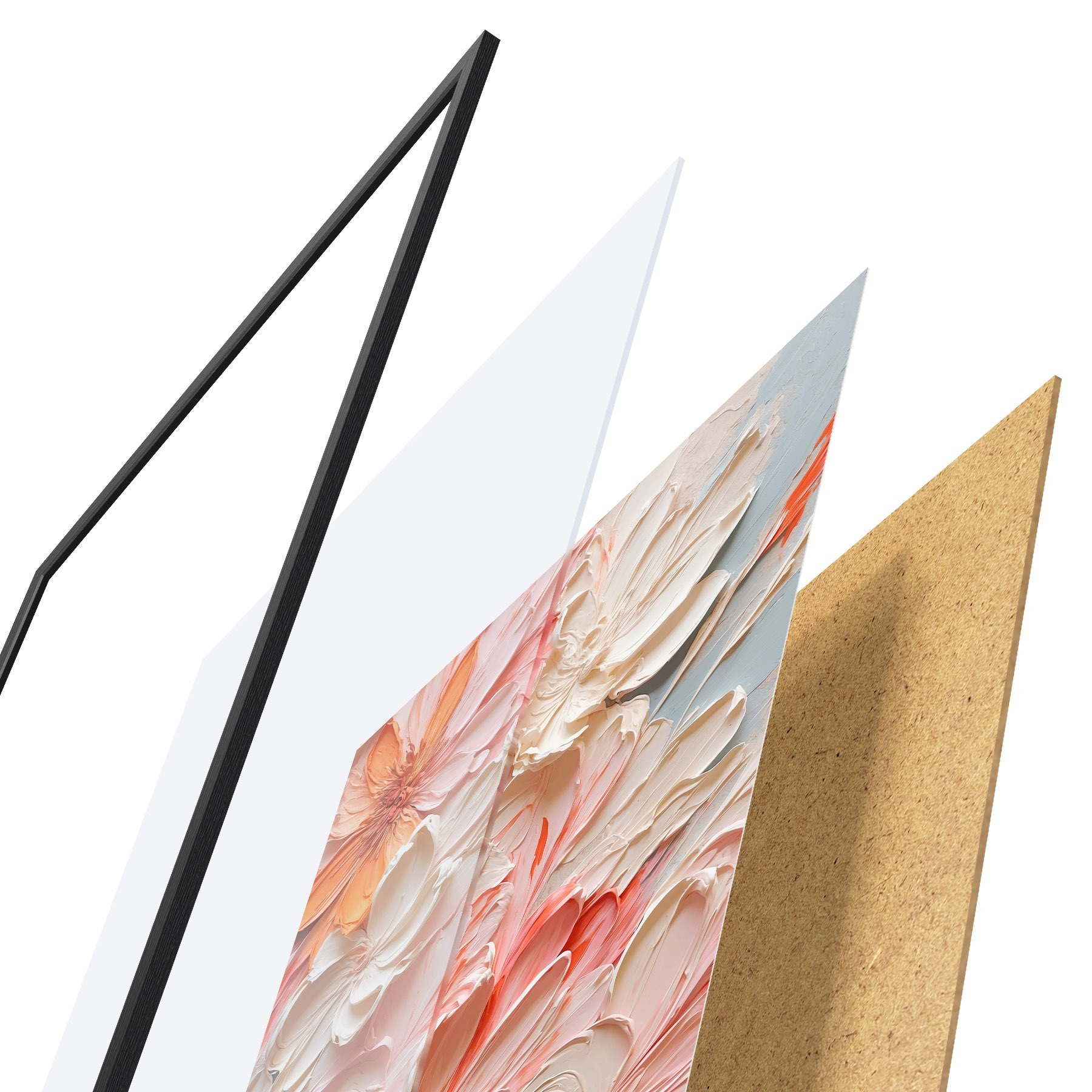 Plakatą sudaro rėmas, pleksiklas, atspausdintas vaizdas ir medžio drožlių plokštės pagrindas. Plakatą galima iš karto pakabinti ant sienos dėl kitoje pusėje esančių laikiklių.