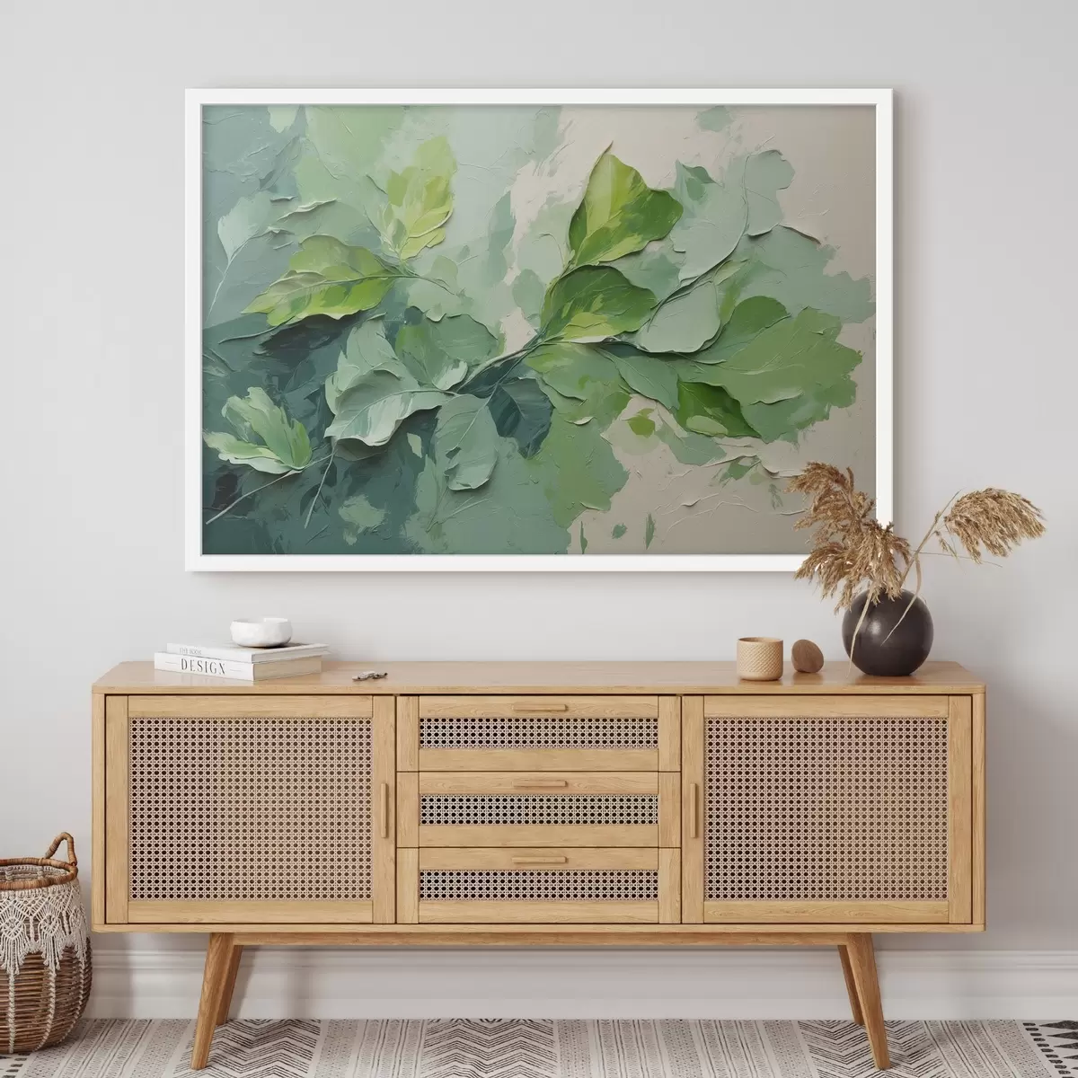 Plakatas Šaka su žaliais lapais aliejinės tapybos stiliumi Ne f44075