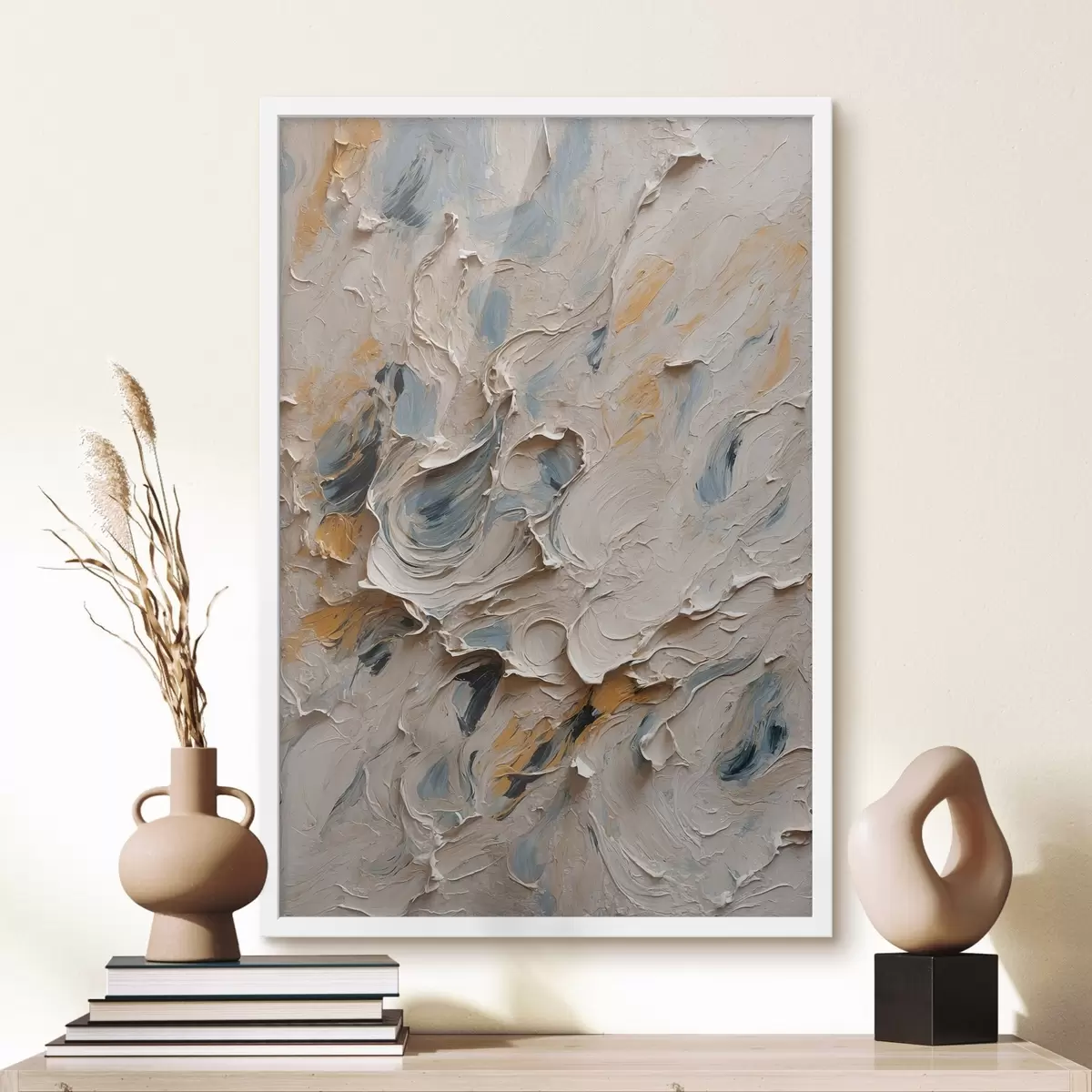 Plakatas Balta ir mėlyna abstrakti tapyba aliejiniais dažais f44078
