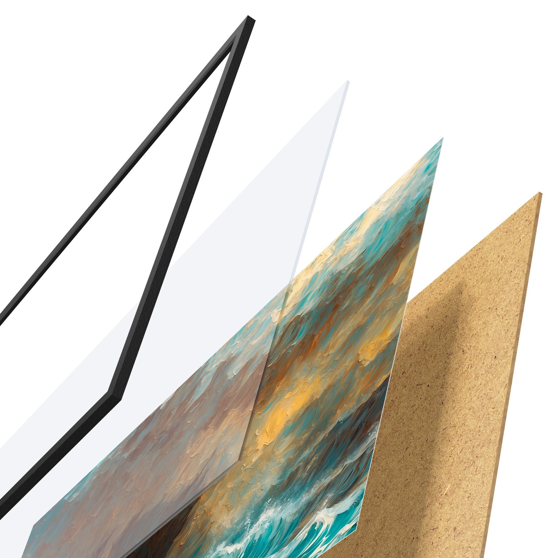 Plakatą sudaro rėmas, pleksiklas, atspausdintas vaizdas ir medžio drožlių plokštės pagrindas. Plakatą galima iš karto pakabinti ant sienos dėl kitoje pusėje esančių laikiklių.