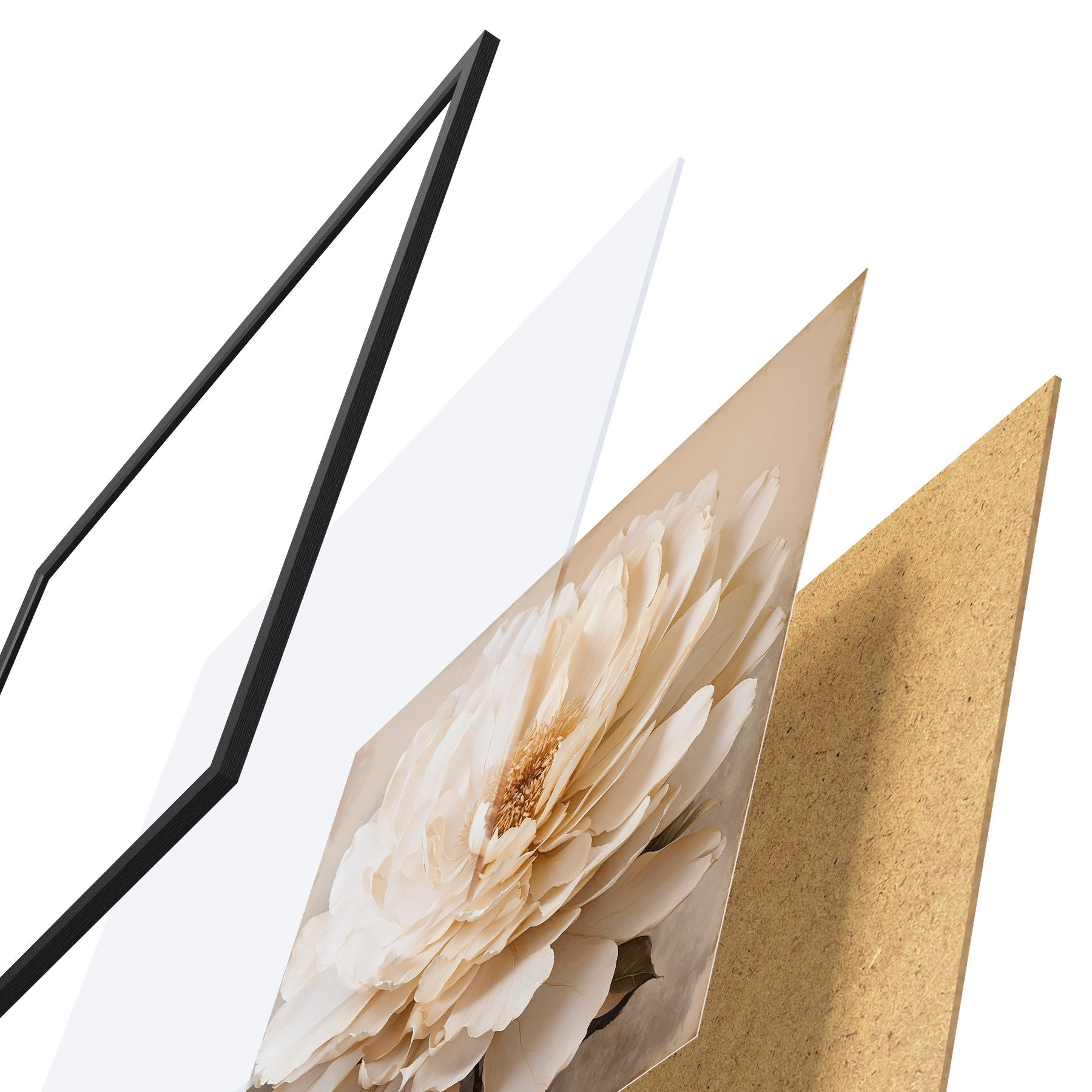 Plakatą sudaro rėmas, pleksiklas, atspausdintas vaizdas ir medžio drožlių plokštės pagrindas. Plakatą galima iš karto pakabinti ant sienos dėl kitoje pusėje esančių laikiklių.