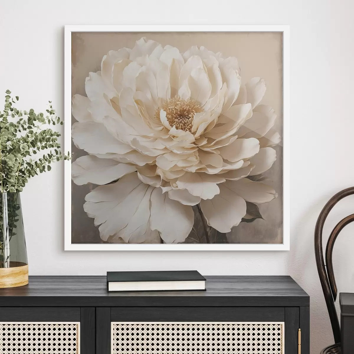 Plakatas Balta gėlė smėlio spalvos fone f44094