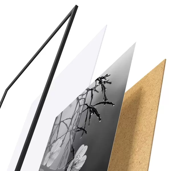 Plakatą sudaro rėmas, pleksiklas, atspausdintas vaizdas ir medžio drožlių plokštės pagrindas. Plakatą galima iš karto pakabinti ant sienos dėl kitoje pusėje esančių laikiklių.