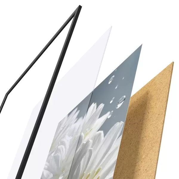 Plakatą sudaro rėmas, pleksiklas, atspausdintas vaizdas ir medžio drožlių plokštės pagrindas. Plakatą galima iš karto pakabinti ant sienos dėl kitoje pusėje esančių laikiklių.
