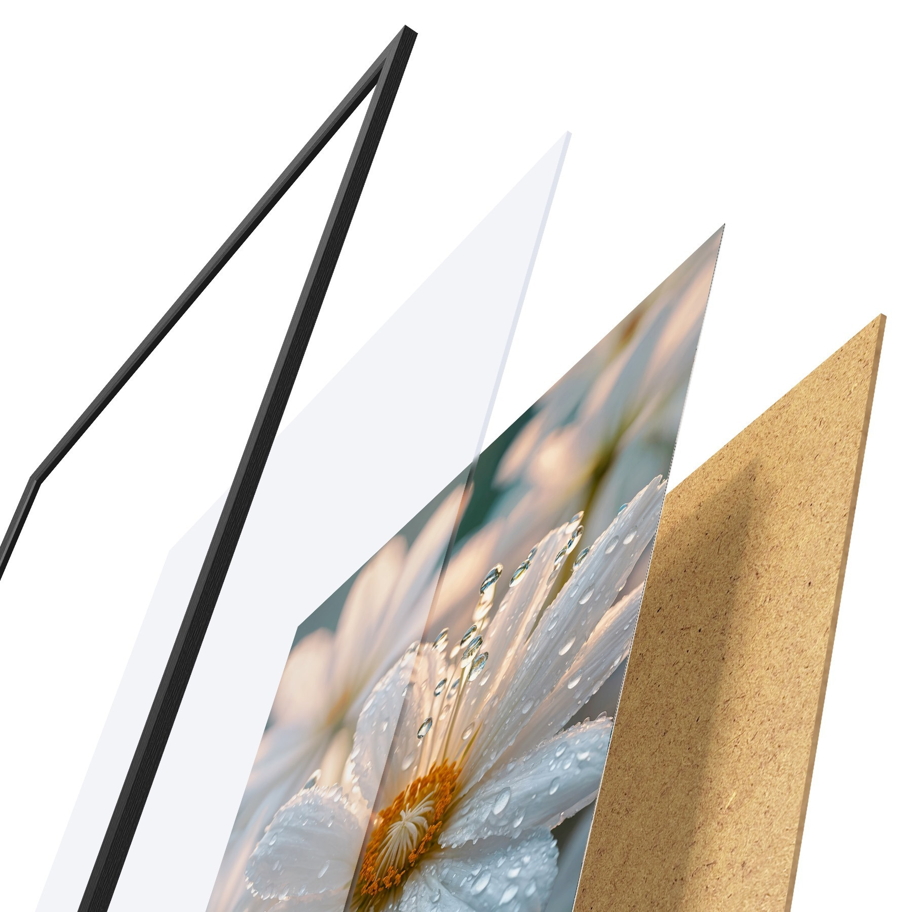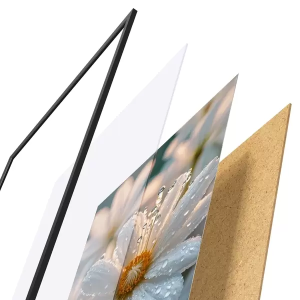 Plakatą sudaro rėmas, pleksiklas, atspausdintas vaizdas ir medžio drožlių plokštės pagrindas. Plakatą galima iš karto pakabinti ant sienos dėl kitoje pusėje esančių laikiklių.