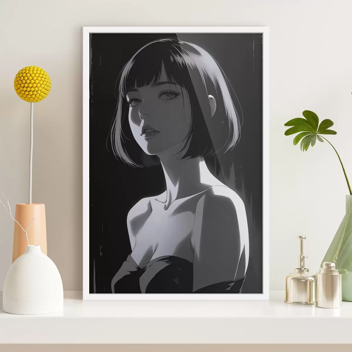 Plakatas Plakatas su mergaite juodame fone Ne f44103