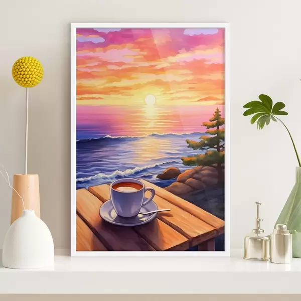 Plakatas Kavos puodelis kraštovaizdžio fone f44105