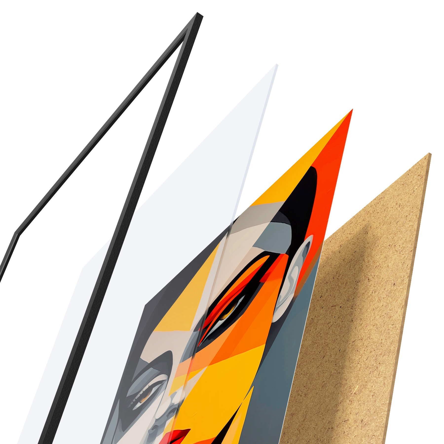 Plakatą sudaro rėmas, pleksiklas, atspausdintas vaizdas ir medžio drožlių plokštės pagrindas. Plakatą galima iš karto pakabinti ant sienos dėl kitoje pusėje esančių laikiklių.