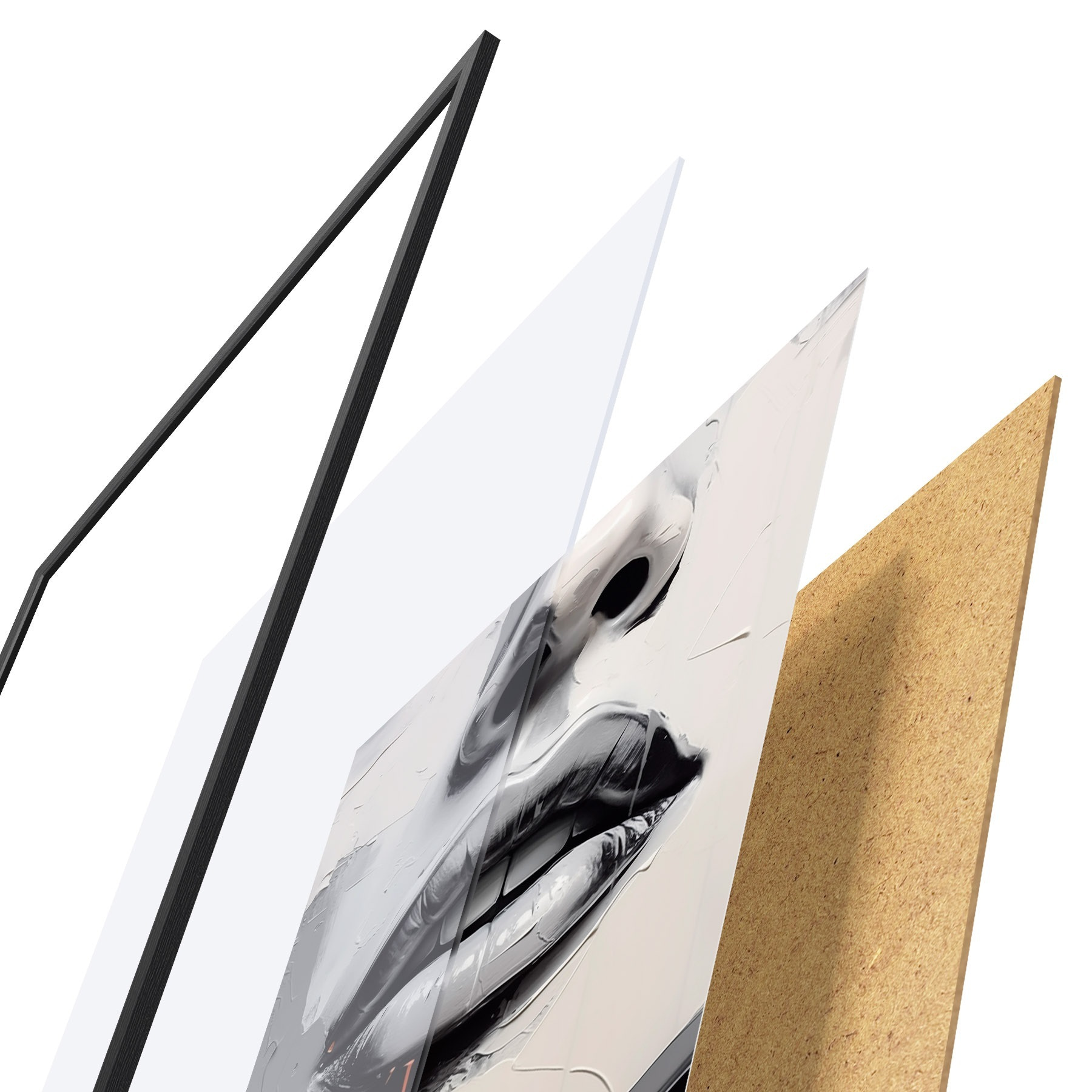 Plakatą sudaro rėmas, pleksiklas, atspausdintas vaizdas ir medžio drožlių plokštės pagrindas. Plakatą galima iš karto pakabinti ant sienos dėl kitoje pusėje esančių laikiklių.