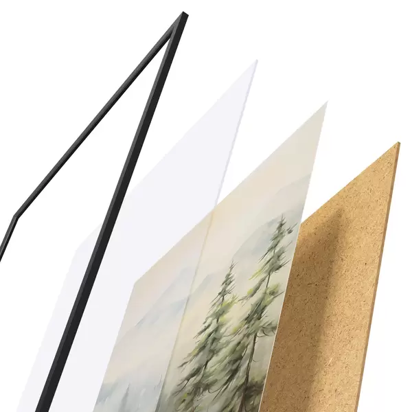 Plakatą sudaro rėmas, pleksiklas, atspausdintas vaizdas ir medžio drožlių plokštės pagrindas. Plakatą galima iš karto pakabinti ant sienos dėl kitoje pusėje esančių laikiklių.