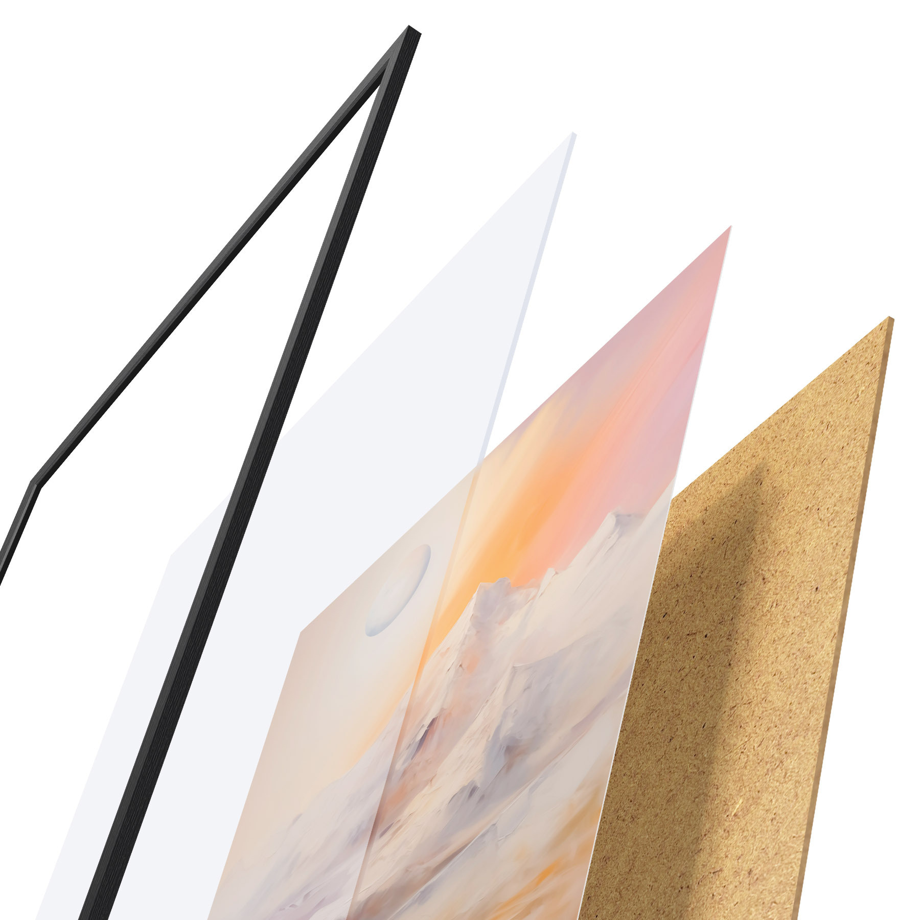 Plakatą sudaro rėmas, pleksiklas, atspausdintas vaizdas ir medžio drožlių plokštės pagrindas. Plakatą galima iš karto pakabinti ant sienos dėl kitoje pusėje esančių laikiklių.