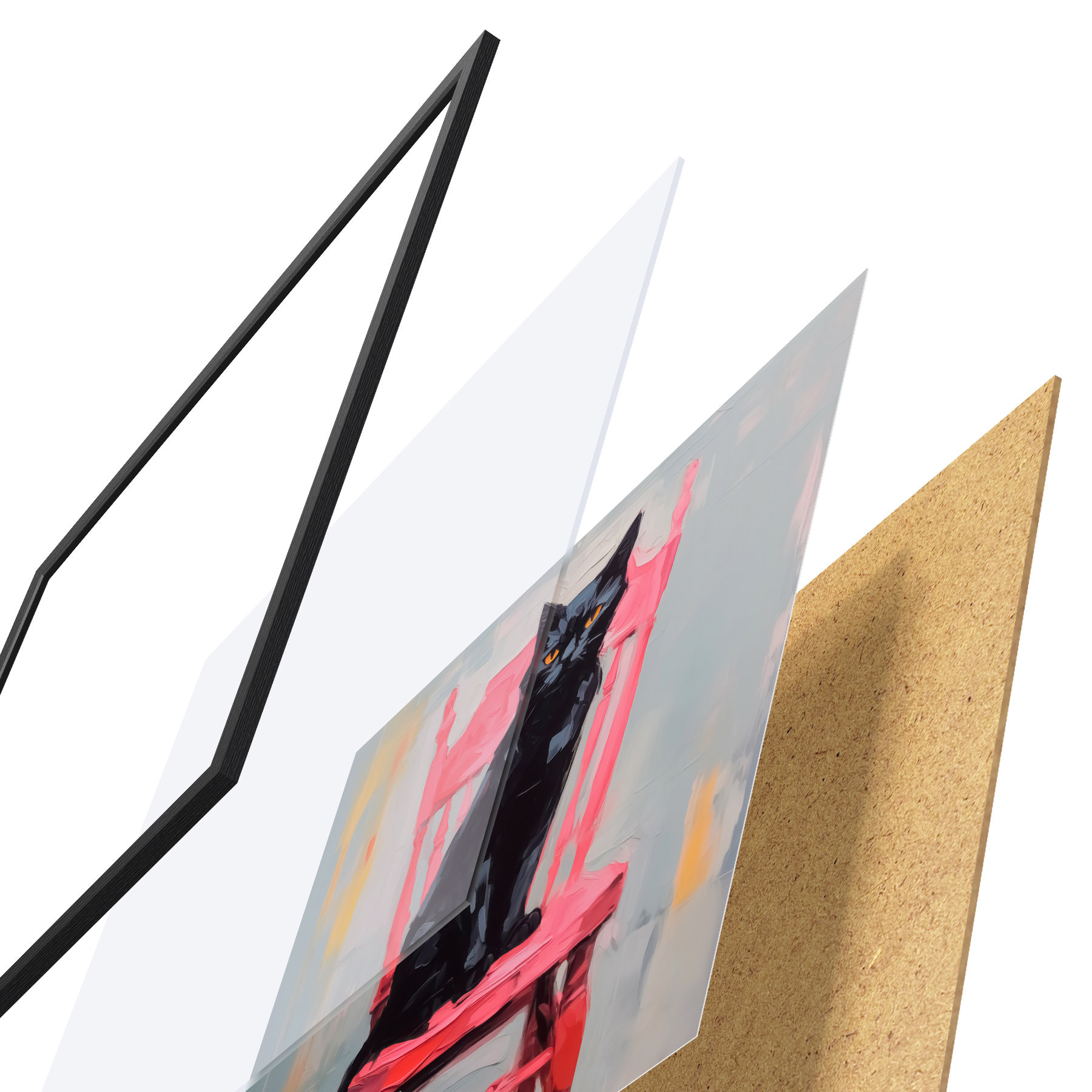 Plakatą sudaro rėmas, pleksiklas, atspausdintas vaizdas ir medžio drožlių plokštės pagrindas. Plakatą galima iš karto pakabinti ant sienos dėl kitoje pusėje esančių laikiklių.