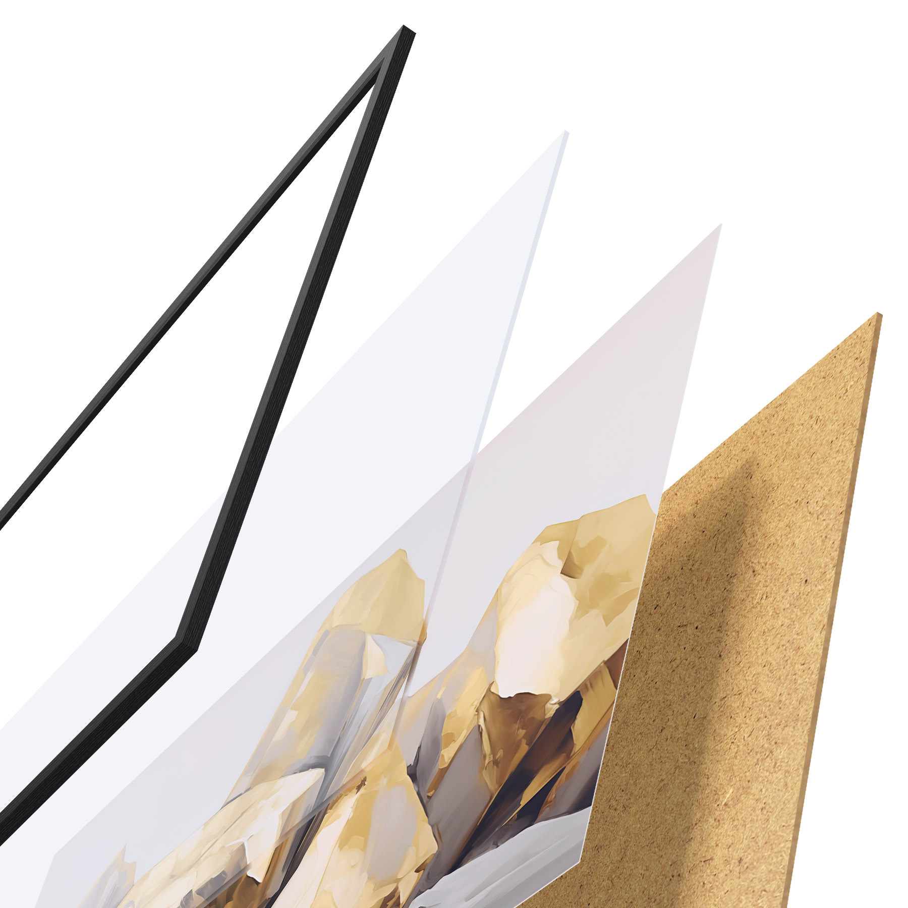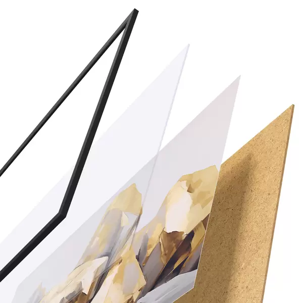 Plakatą sudaro rėmas, pleksiklas, atspausdintas vaizdas ir medžio drožlių plokštės pagrindas. Plakatą galima iš karto pakabinti ant sienos dėl kitoje pusėje esančių laikiklių.