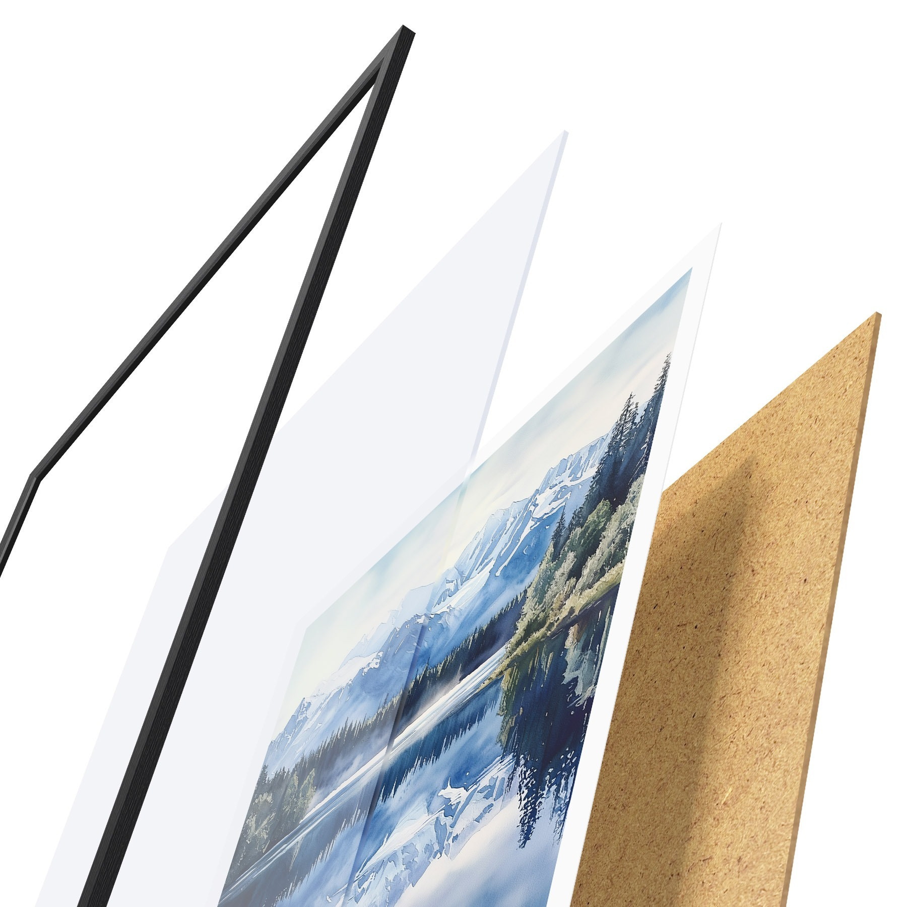 Plakatą sudaro rėmas, pleksiklas, atspausdintas vaizdas ir medžio drožlių plokštės pagrindas. Plakatą galima iš karto pakabinti ant sienos dėl kitoje pusėje esančių laikiklių.