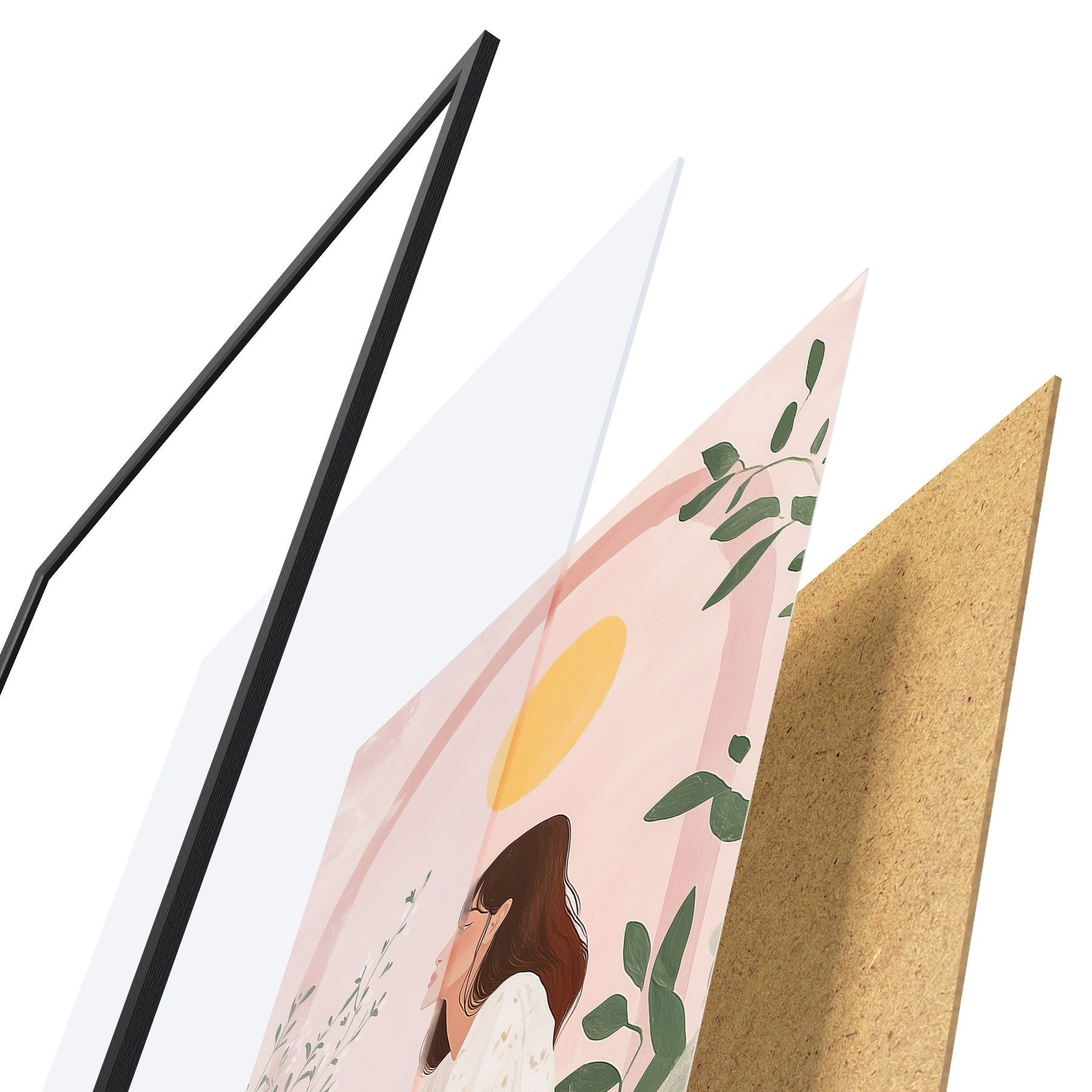 Plakatą sudaro rėmas, pleksiklas, atspausdintas vaizdas ir medžio drožlių plokštės pagrindas. Plakatą galima iš karto pakabinti ant sienos dėl kitoje pusėje esančių laikiklių.