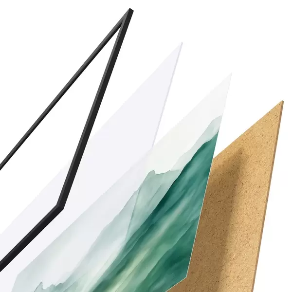 Plakatą sudaro rėmas, pleksiklas, atspausdintas vaizdas ir medžio drožlių plokštės pagrindas. Plakatą galima iš karto pakabinti ant sienos dėl kitoje pusėje esančių laikiklių.