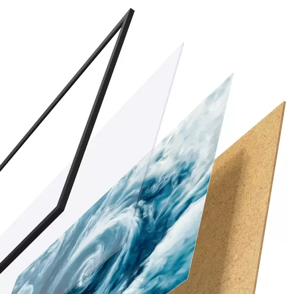 Plakatą sudaro rėmas, pleksiklas, atspausdintas vaizdas ir medžio drožlių plokštės pagrindas. Plakatą galima iš karto pakabinti ant sienos dėl kitoje pusėje esančių laikiklių.