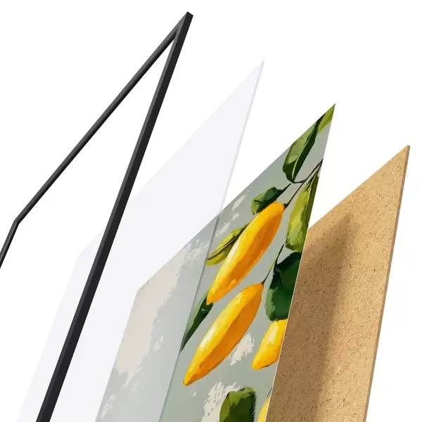 Plakatą sudaro rėmas, pleksiklas, atspausdintas vaizdas ir medžio drožlių plokštės pagrindas. Plakatą galima iš karto pakabinti ant sienos dėl kitoje pusėje esančių laikiklių.
