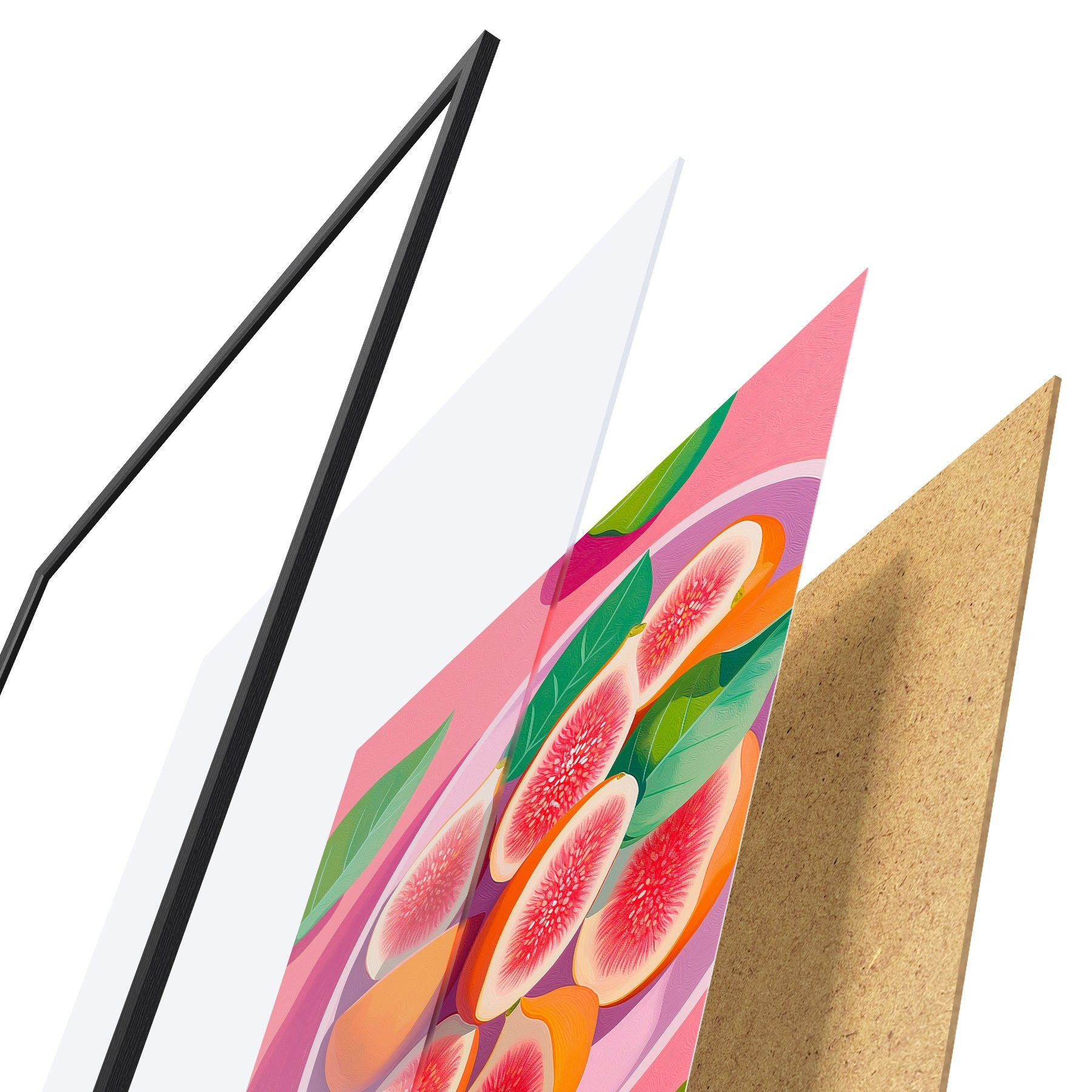 Plakatą sudaro rėmas, pleksiklas, atspausdintas vaizdas ir medžio drožlių plokštės pagrindas. Plakatą galima iš karto pakabinti ant sienos dėl kitoje pusėje esančių laikiklių.