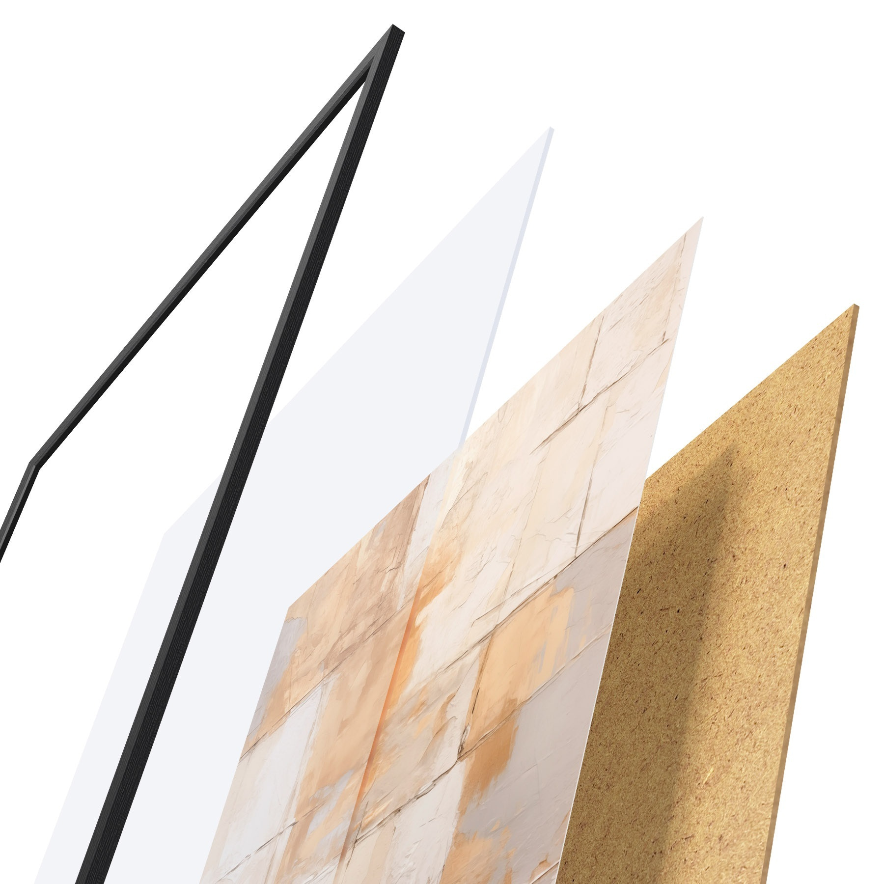 Plakatą sudaro rėmas, pleksiklas, atspausdintas vaizdas ir medžio drožlių plokštės pagrindas. Plakatą galima iš karto pakabinti ant sienos dėl kitoje pusėje esančių laikiklių.