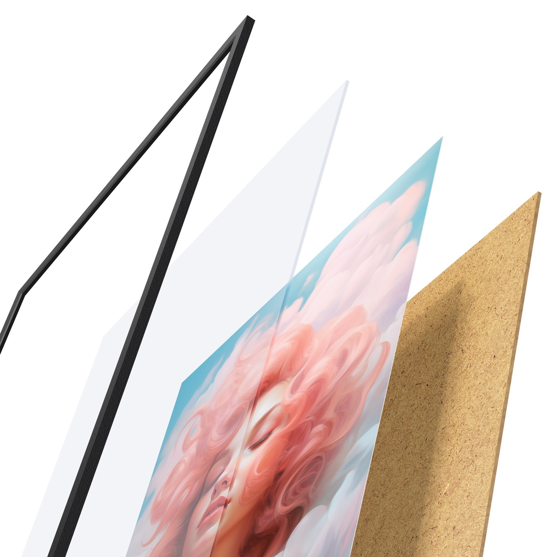 Plakatą sudaro rėmas, pleksiklas, atspausdintas vaizdas ir medžio drožlių plokštės pagrindas. Plakatą galima iš karto pakabinti ant sienos dėl kitoje pusėje esančių laikiklių.