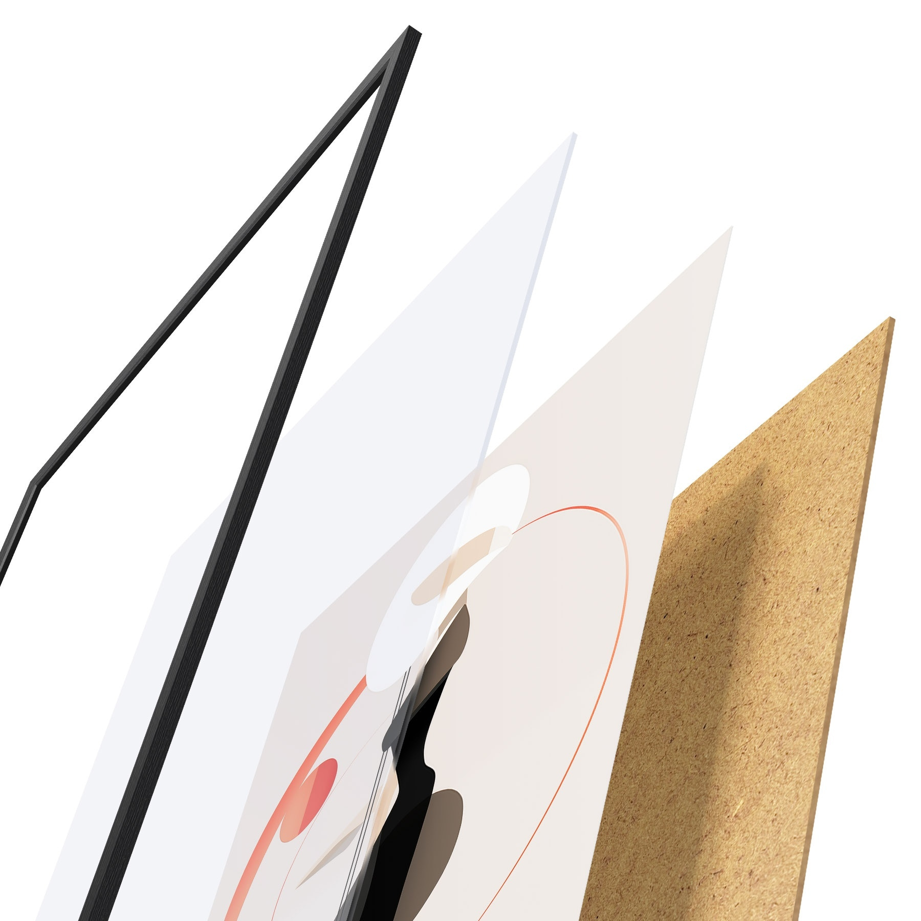 Plakatą sudaro rėmas, pleksiklas, atspausdintas vaizdas ir medžio drožlių plokštės pagrindas. Plakatą galima iš karto pakabinti ant sienos dėl kitoje pusėje esančių laikiklių.