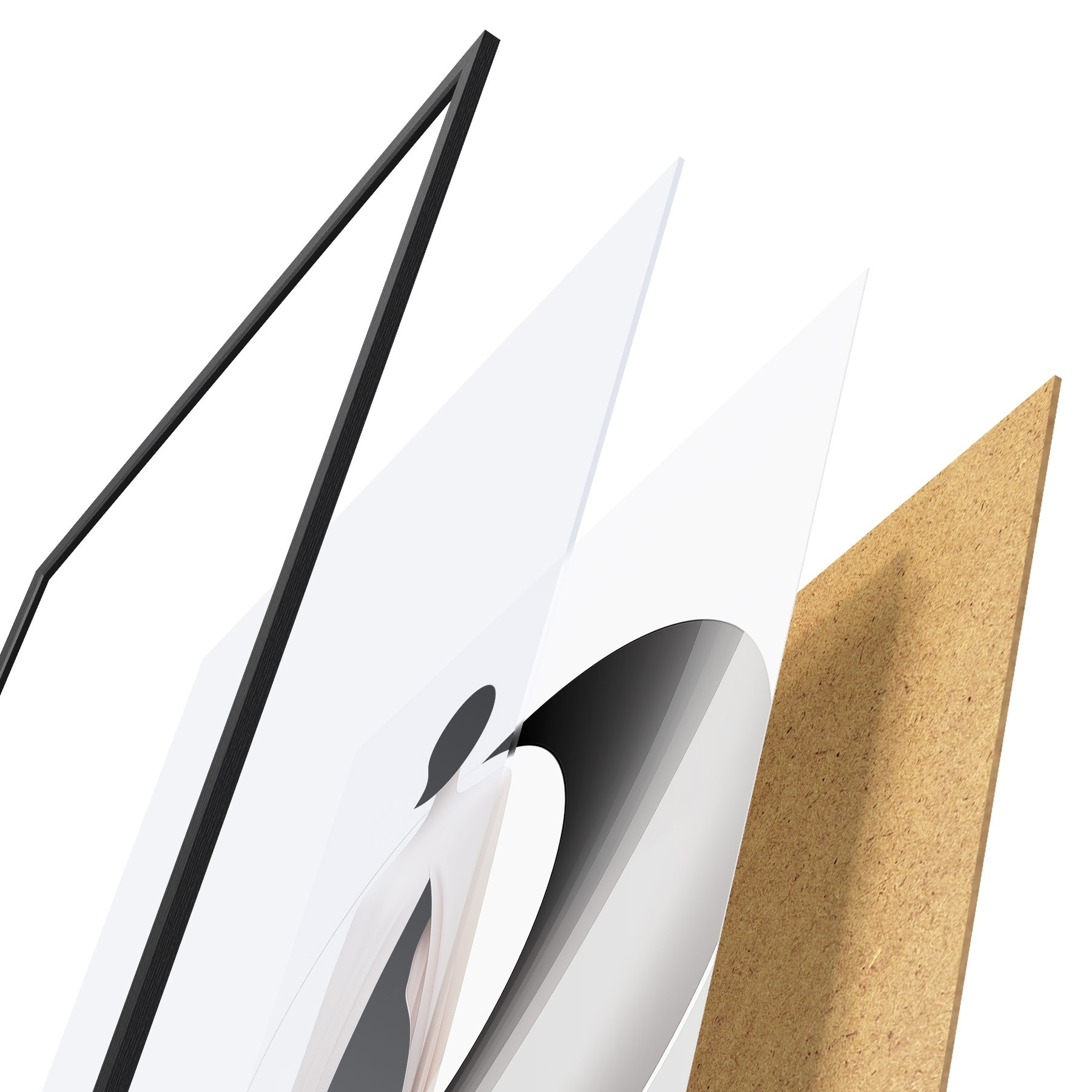 Plakatą sudaro rėmas, pleksiklas, atspausdintas vaizdas ir medžio drožlių plokštės pagrindas. Plakatą galima iš karto pakabinti ant sienos dėl kitoje pusėje esančių laikiklių.