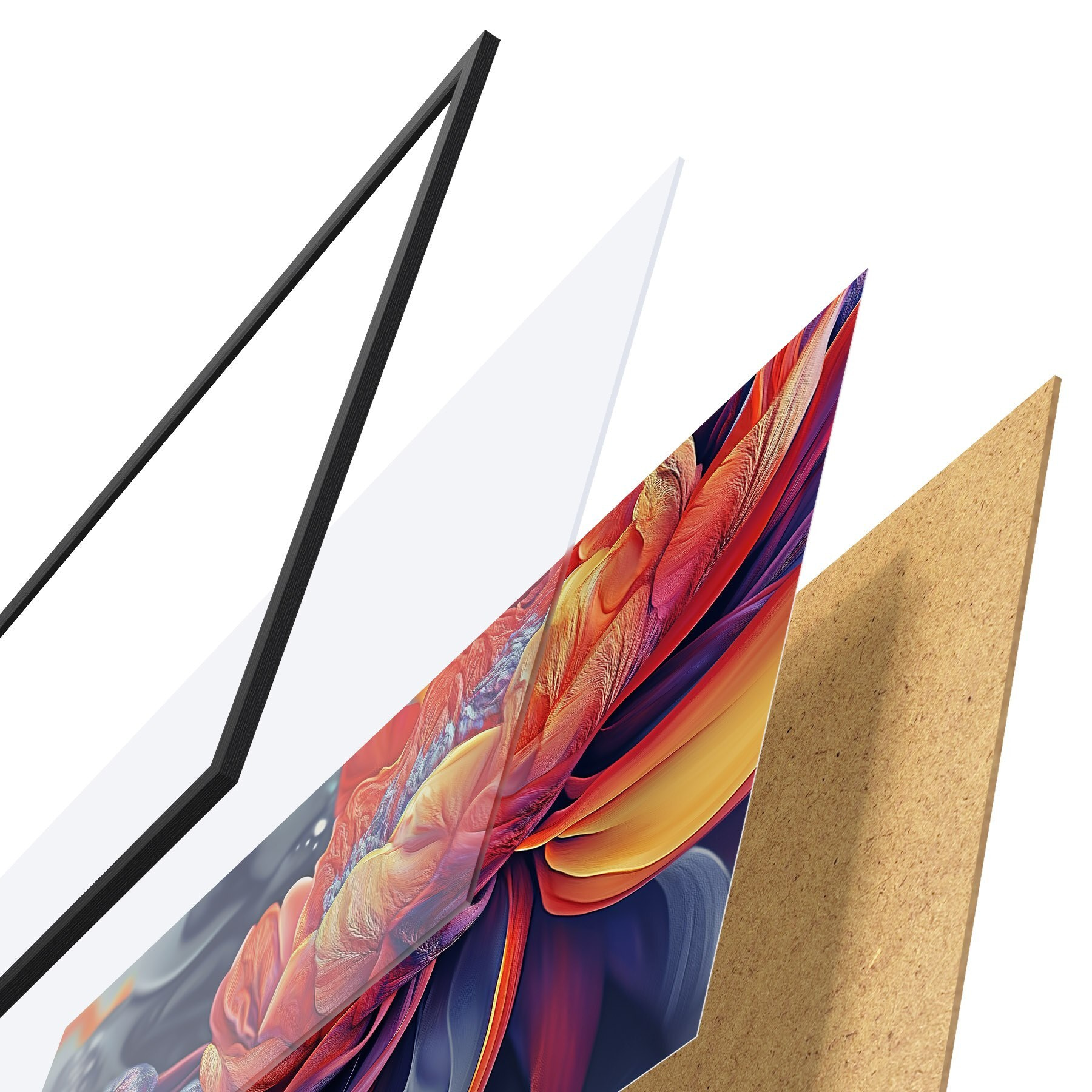 Plakatą sudaro rėmas, pleksiklas, atspausdintas vaizdas ir medžio drožlių plokštės pagrindas. Plakatą galima iš karto pakabinti ant sienos dėl kitoje pusėje esančių laikiklių.