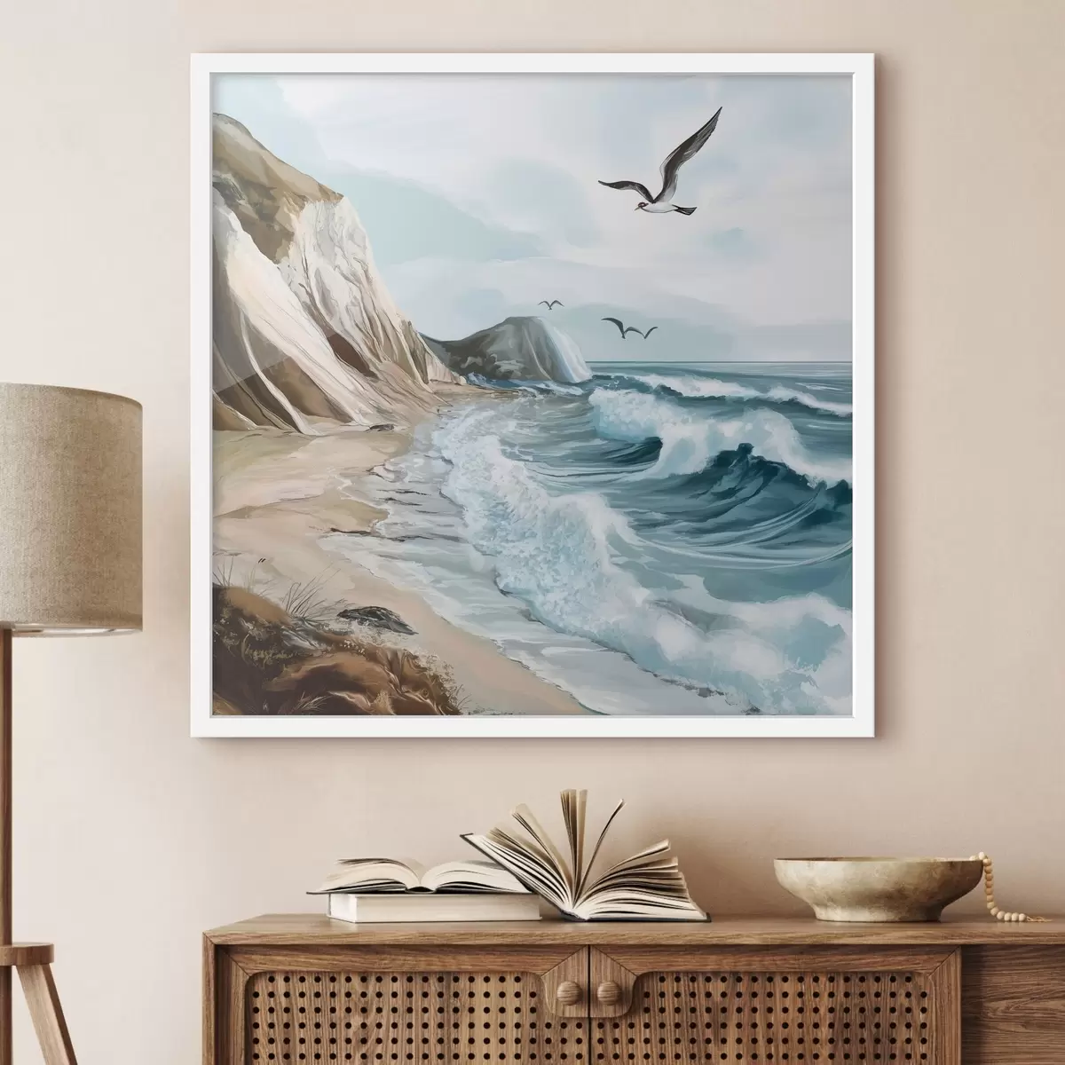 Plakatas Smėlio paplūdimys ir paukščiai f44222