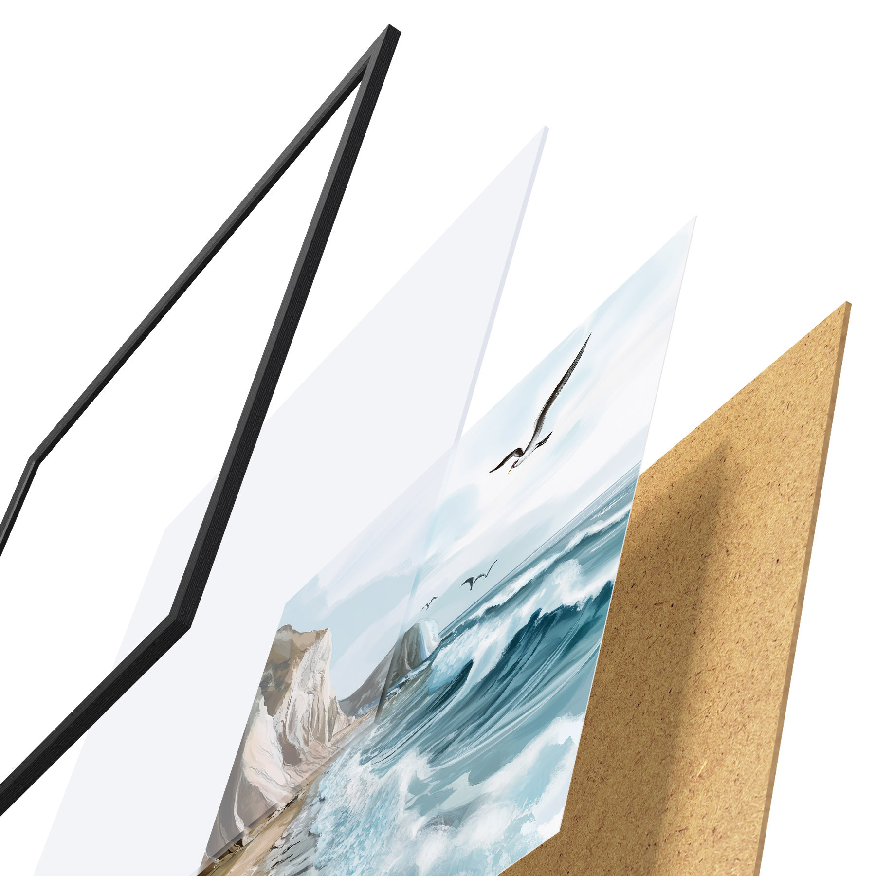Plakatą sudaro rėmas, pleksiklas, atspausdintas vaizdas ir medžio drožlių plokštės pagrindas. Plakatą galima iš karto pakabinti ant sienos dėl kitoje pusėje esančių laikiklių.