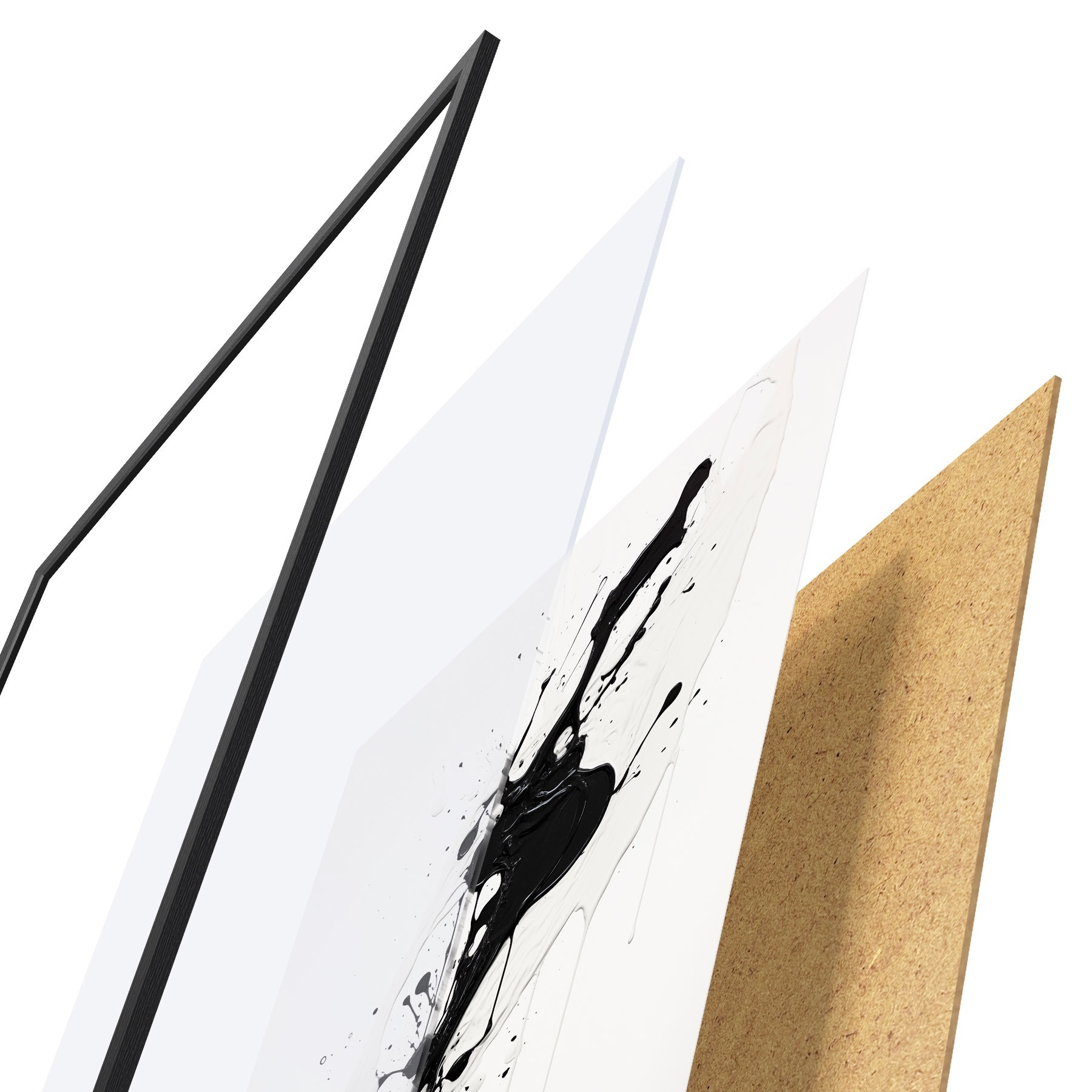 Plakatą sudaro rėmas, pleksiklas, atspausdintas vaizdas ir medžio drožlių plokštės pagrindas. Plakatą galima iš karto pakabinti ant sienos dėl kitoje pusėje esančių laikiklių.