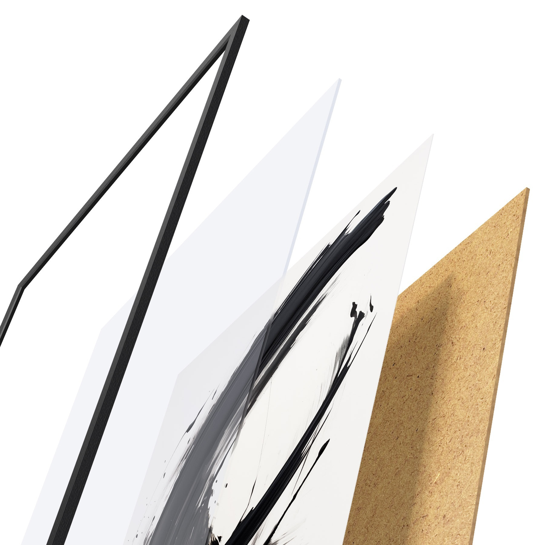 Plakatą sudaro rėmas, pleksiklas, atspausdintas vaizdas ir medžio drožlių plokštės pagrindas. Plakatą galima iš karto pakabinti ant sienos dėl kitoje pusėje esančių laikiklių.