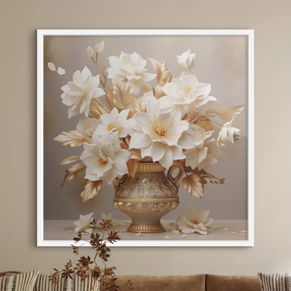 Plakatas Švelni puokštė klasikinėje realistinio stiliaus vazoje f44237