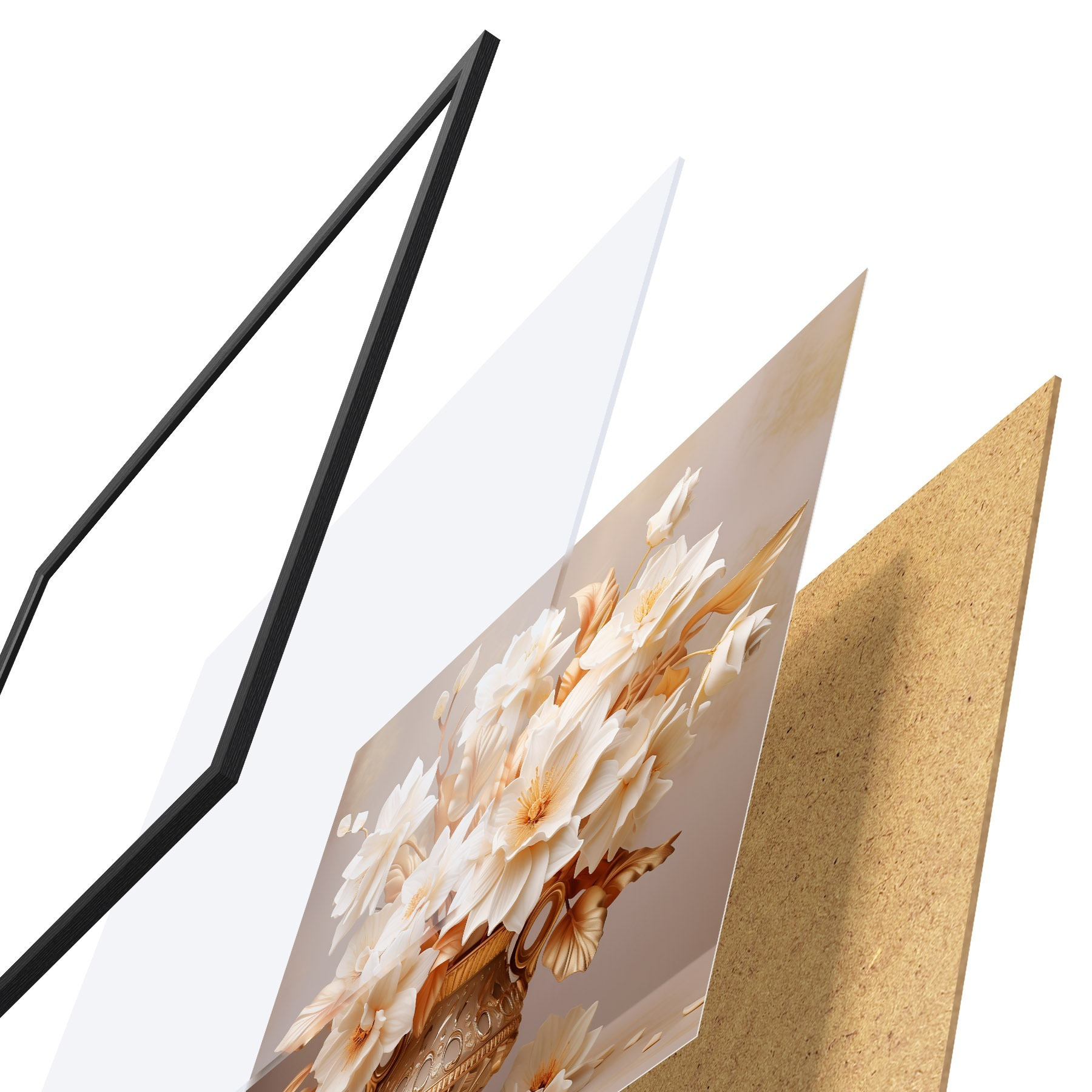 Plakatą sudaro rėmas, pleksiklas, atspausdintas vaizdas ir medžio drožlių plokštės pagrindas. Plakatą galima iš karto pakabinti ant sienos dėl kitoje pusėje esančių laikiklių.