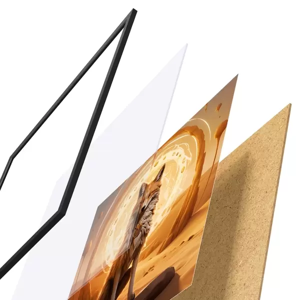Plakatą sudaro rėmas, pleksiklas, atspausdintas vaizdas ir medžio drožlių plokštės pagrindas. Plakatą galima iš karto pakabinti ant sienos dėl kitoje pusėje esančių laikiklių.