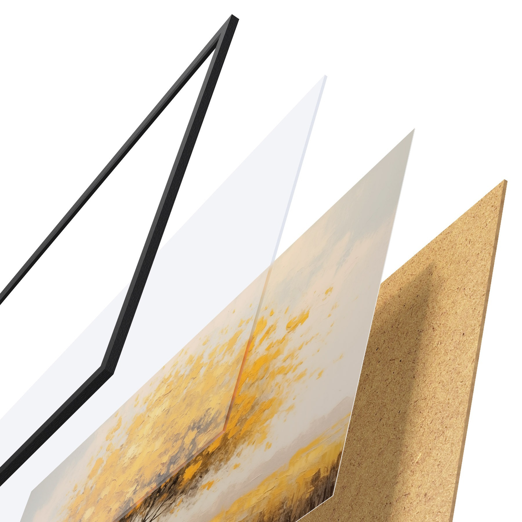 Plakatą sudaro rėmas, pleksiklas, atspausdintas vaizdas ir medžio drožlių plokštės pagrindas. Plakatą galima iš karto pakabinti ant sienos dėl kitoje pusėje esančių laikiklių.