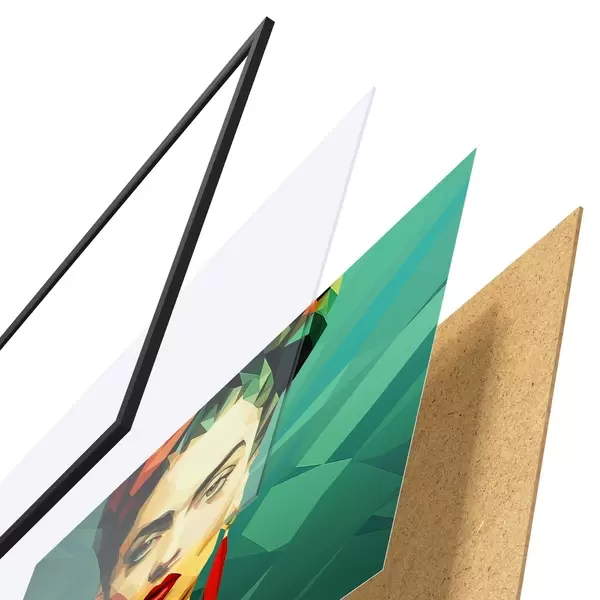 Plakatą sudaro rėmas, pleksiklas, atspausdintas vaizdas ir medžio drožlių plokštės pagrindas. Plakatą galima iš karto pakabinti ant sienos dėl kitoje pusėje esančių laikiklių.