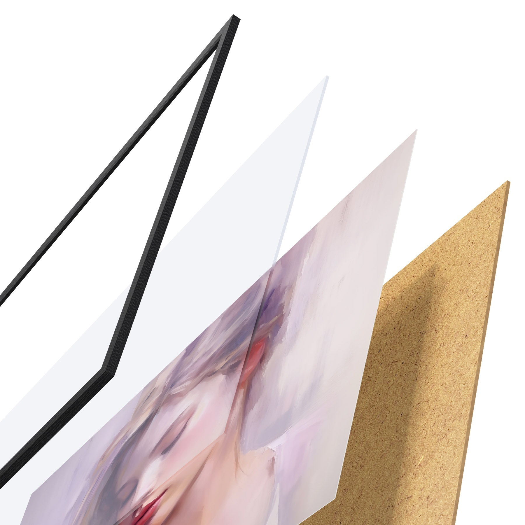 Plakatą sudaro rėmas, pleksiklas, atspausdintas vaizdas ir medžio drožlių plokštės pagrindas. Plakatą galima iš karto pakabinti ant sienos dėl kitoje pusėje esančių laikiklių.