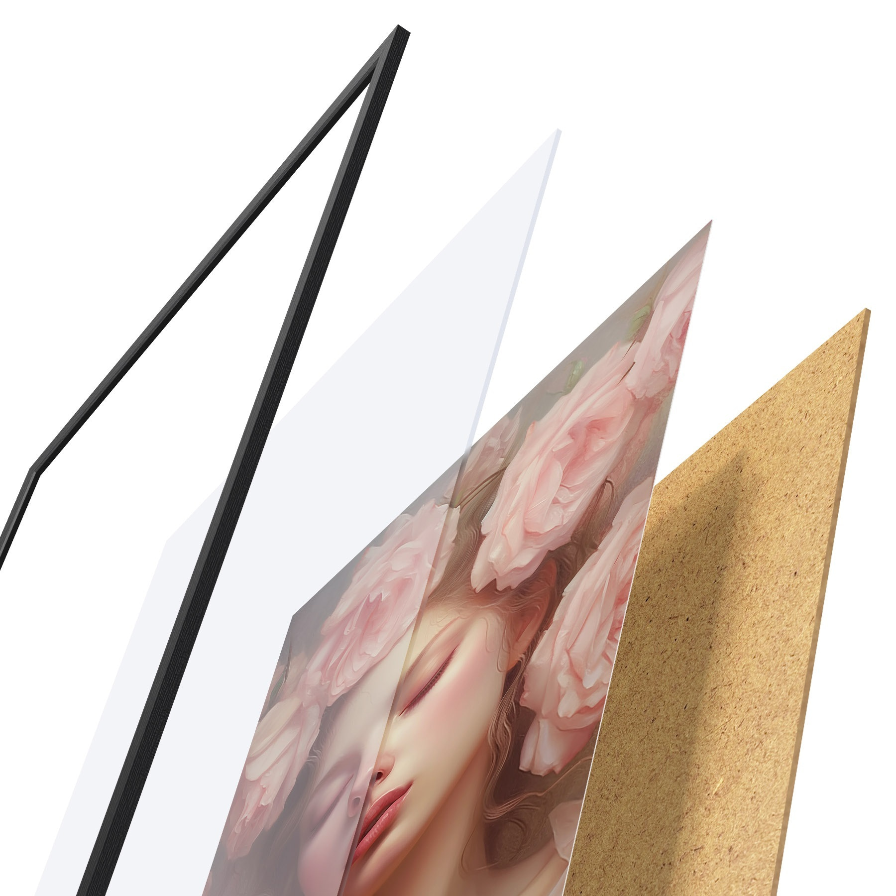 Plakatą sudaro rėmas, pleksiklas, atspausdintas vaizdas ir medžio drožlių plokštės pagrindas. Plakatą galima iš karto pakabinti ant sienos dėl kitoje pusėje esančių laikiklių.