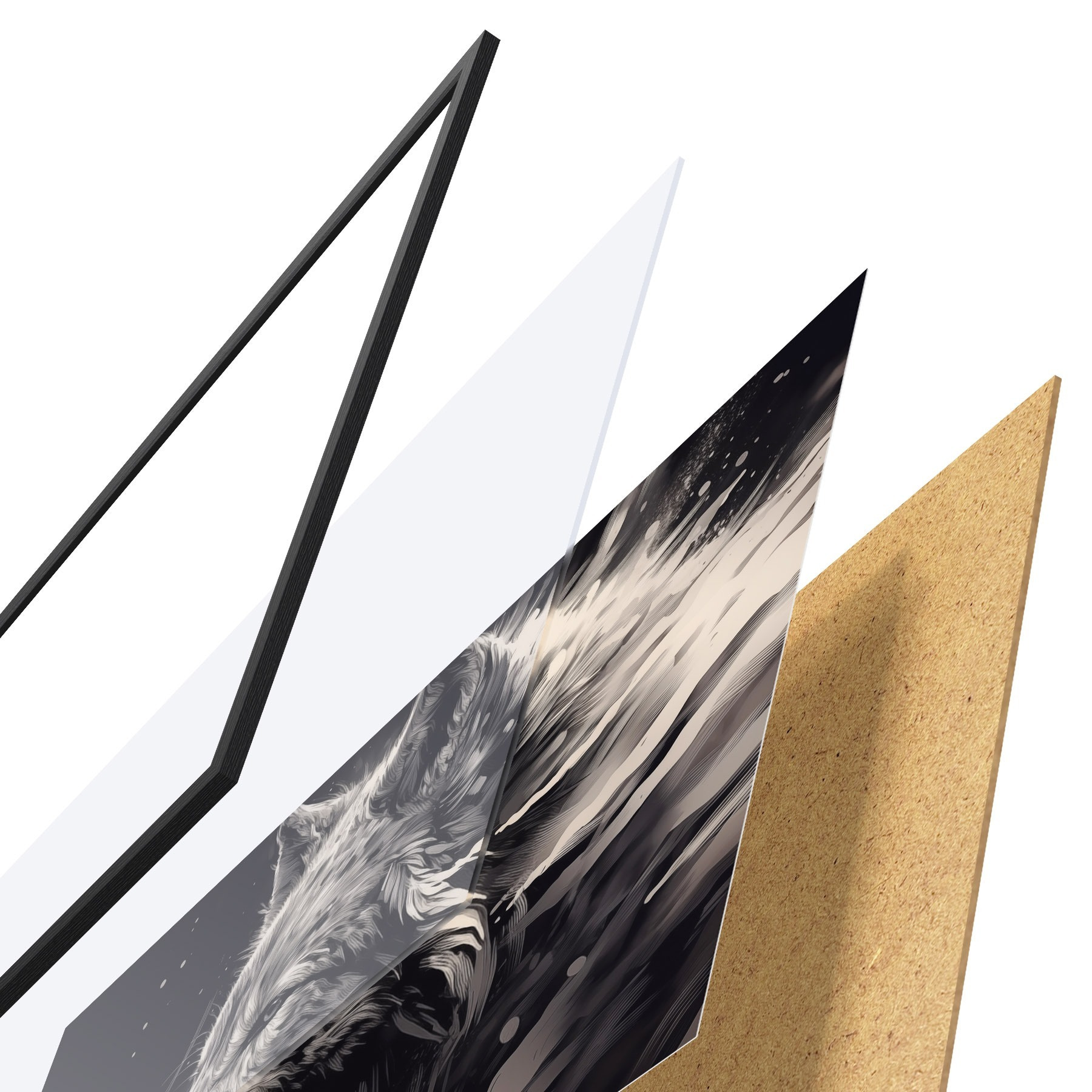 Plakatą sudaro rėmas, pleksiklas, atspausdintas vaizdas ir medžio drožlių plokštės pagrindas. Plakatą galima iš karto pakabinti ant sienos dėl kitoje pusėje esančių laikiklių.
