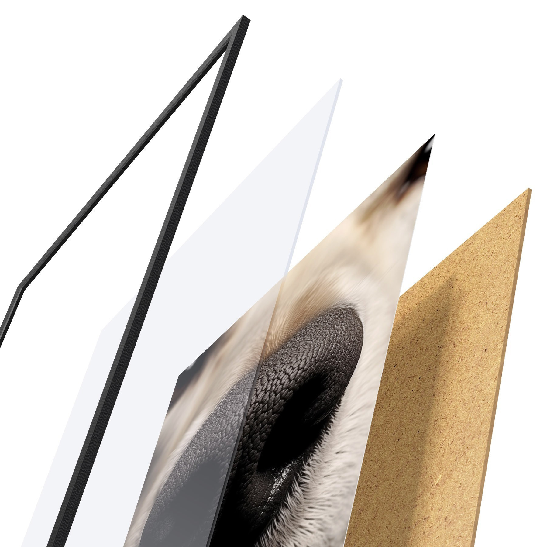 Plakatą sudaro rėmas, pleksiklas, atspausdintas vaizdas ir medžio drožlių plokštės pagrindas. Plakatą galima iš karto pakabinti ant sienos dėl kitoje pusėje esančių laikiklių.