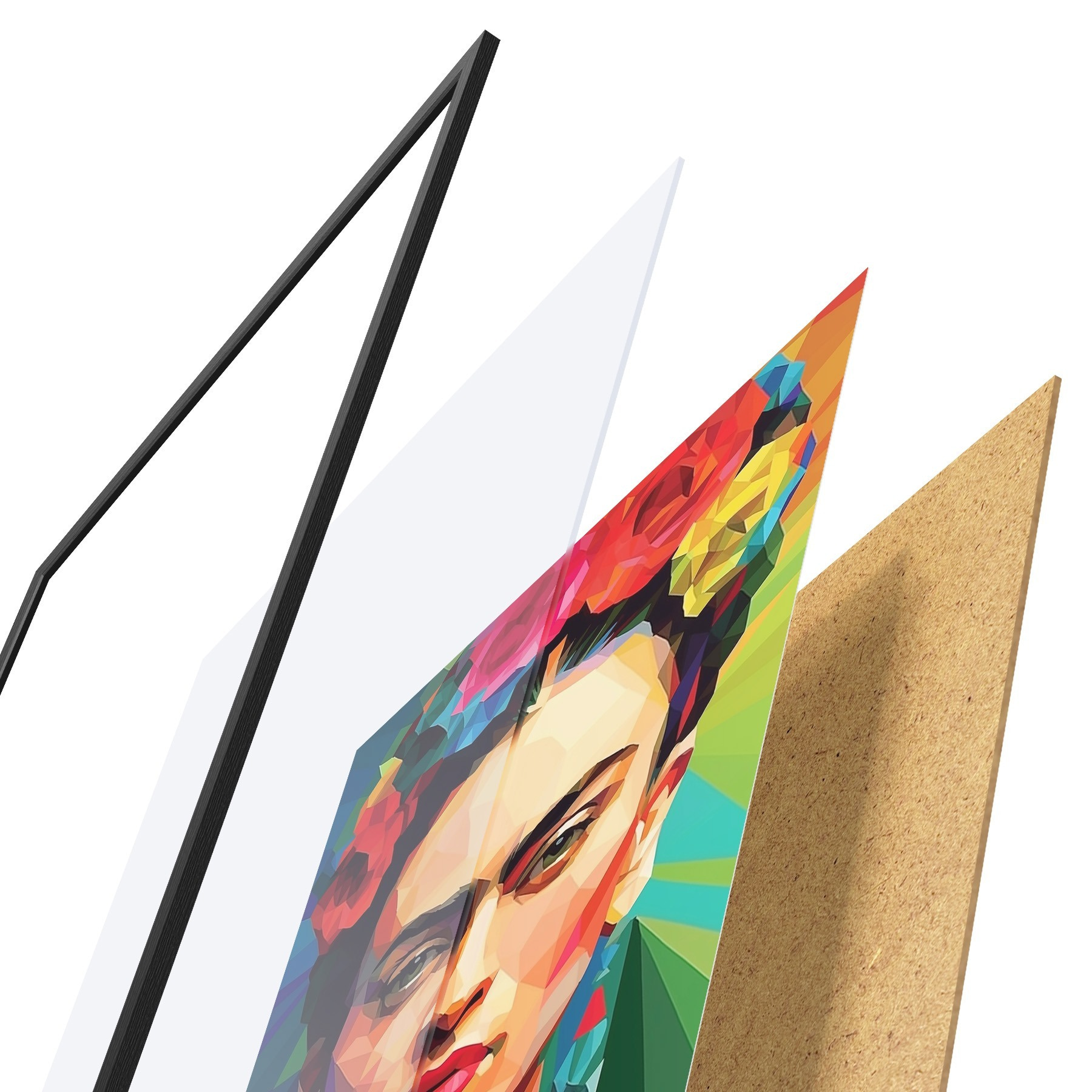 Plakatą sudaro rėmas, pleksiklas, atspausdintas vaizdas ir medžio drožlių plokštės pagrindas. Plakatą galima iš karto pakabinti ant sienos dėl kitoje pusėje esančių laikiklių.