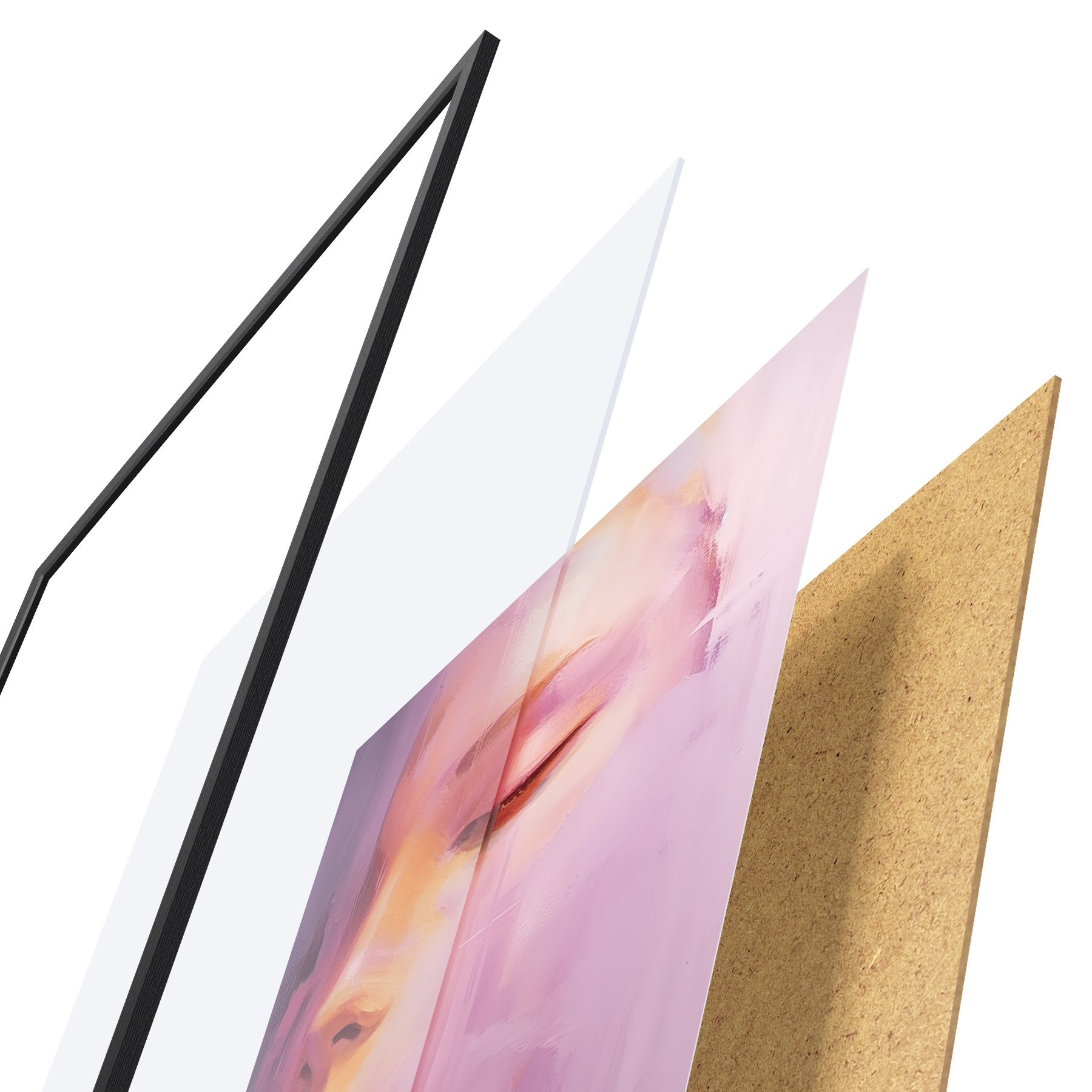 Plakatą sudaro rėmas, pleksiklas, atspausdintas vaizdas ir medžio drožlių plokštės pagrindas. Plakatą galima iš karto pakabinti ant sienos dėl kitoje pusėje esančių laikiklių.