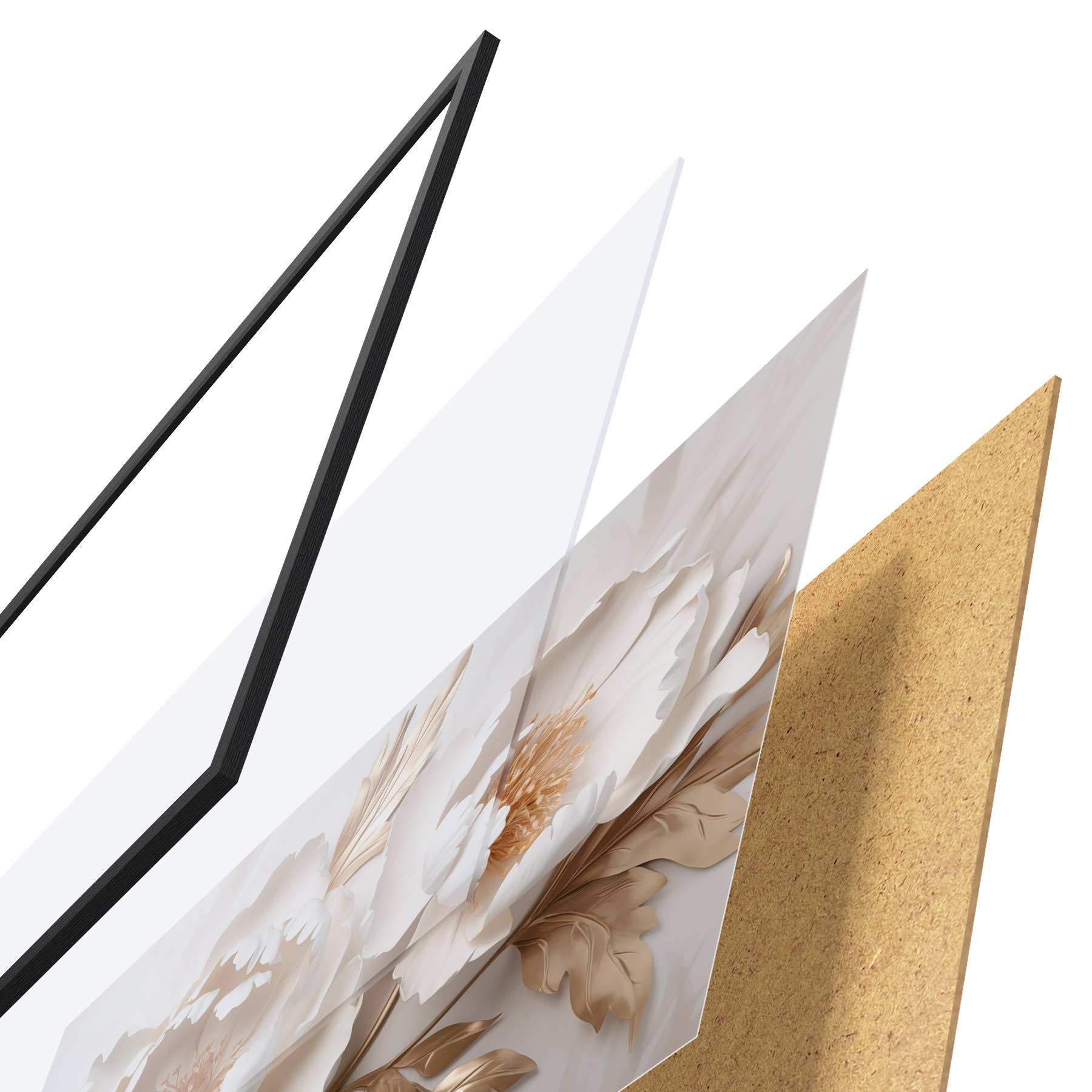 Plakatą sudaro rėmas, pleksiklas, atspausdintas vaizdas ir medžio drožlių plokštės pagrindas. Plakatą galima iš karto pakabinti ant sienos dėl kitoje pusėje esančių laikiklių.