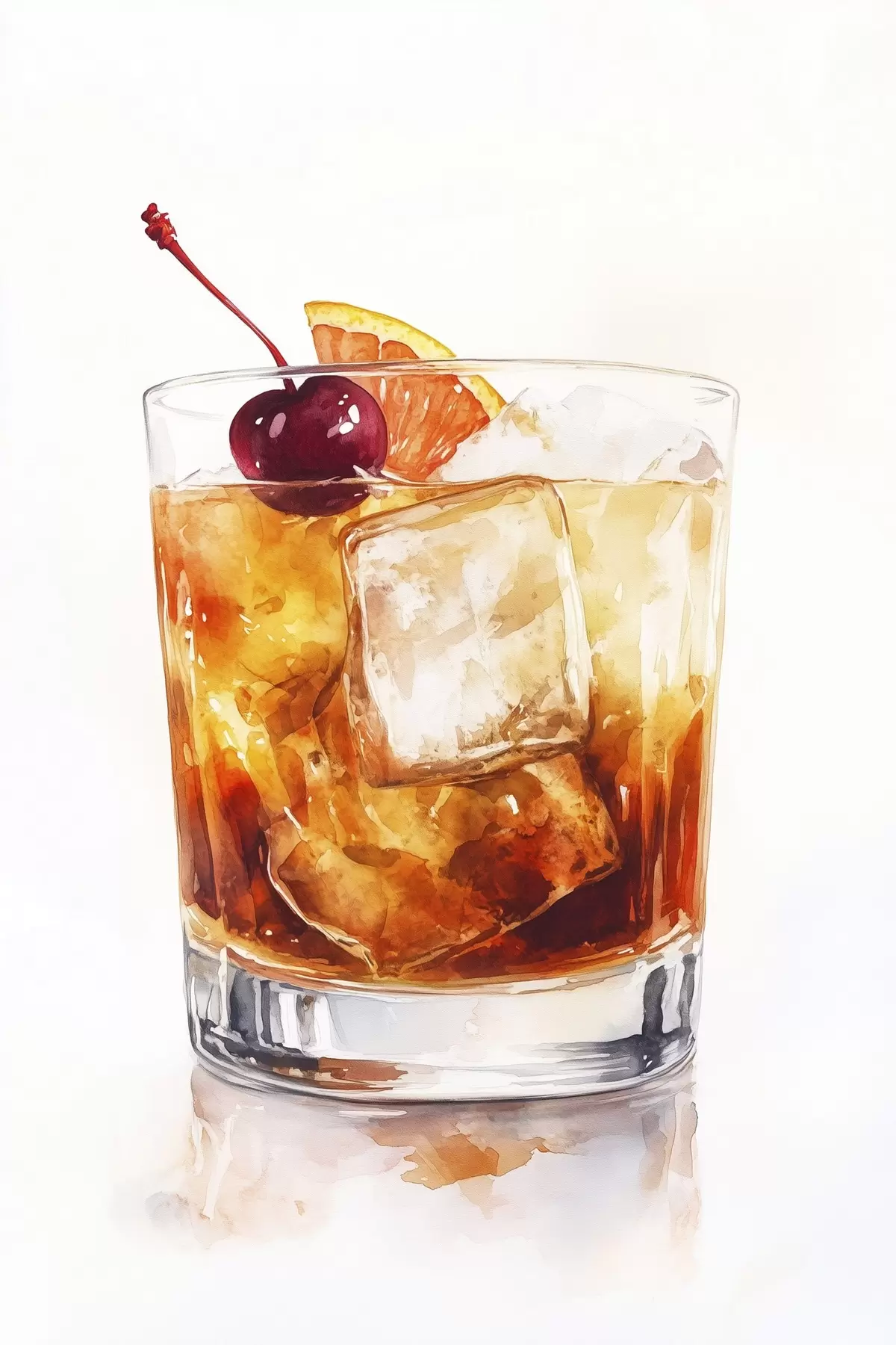 Plakatas Apelsinų kokteilis su ledu ir vyšniomis, akvarelės stilius f44303